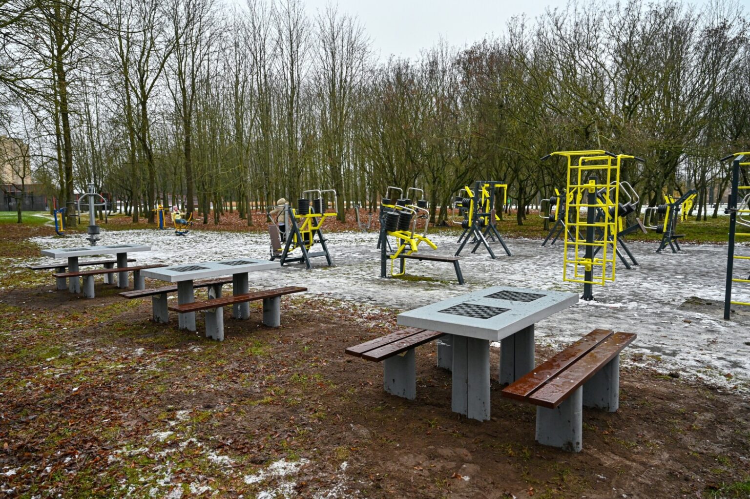 Pastatyti trys žaidimų stalai, prie kurių šaškėmis arba šachmatais vienu metu galės žaisti dvylika žmonių, ir penkiolika įvairių treniruoklių, skirtų kojų, rankų, krūtinės, nugaros bei kitiems raumenims treniruoti: gimnastikos kopetėles, lauko treniruočių suoliukas atsilenkimams, žingsniuoklis – kojų raumenų lauko treniruoklis – asmenims, turintiems judėjimo funkcijų sutrikimų, rankinis dviratis, skirtas rankų ir nugaros raumenims treniruoti, ir kt.