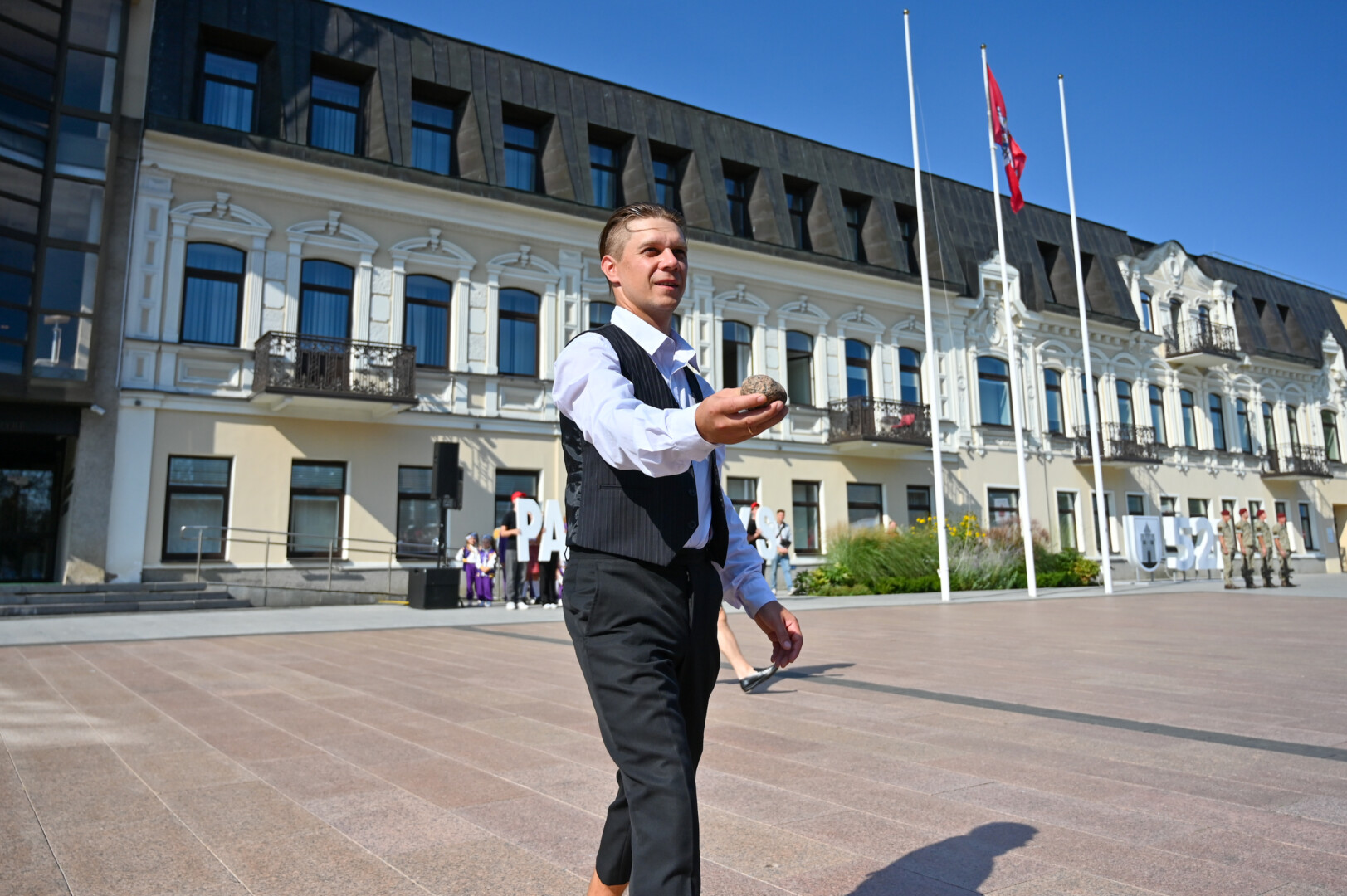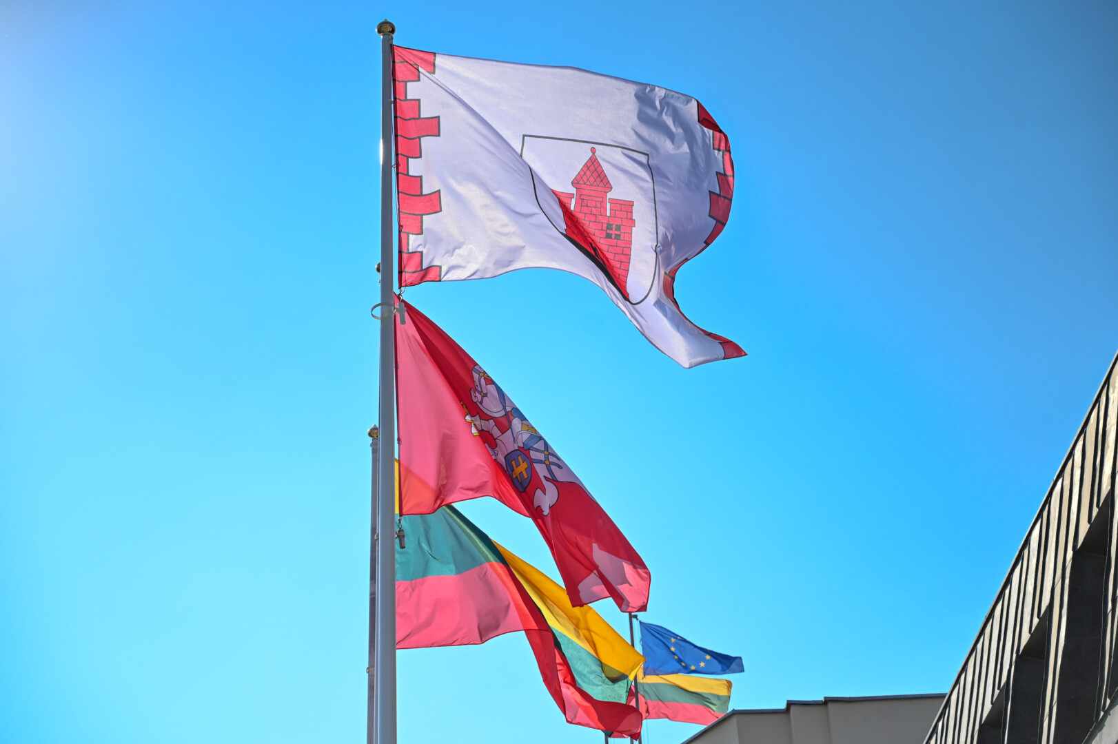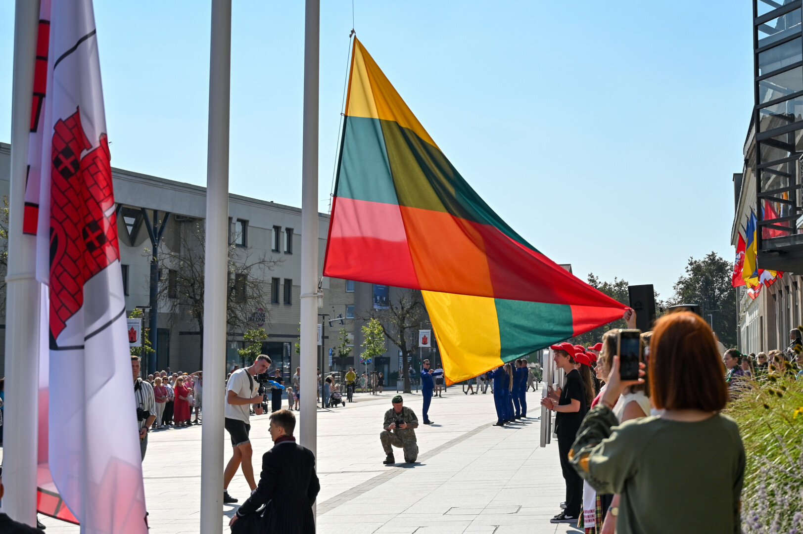 Panevėžiui švenčiant 521-ąjį gimtadienį, šiandien prie miesto Savivaldybės vyko iškilminga vėliavos kėlimo ceremonija.