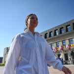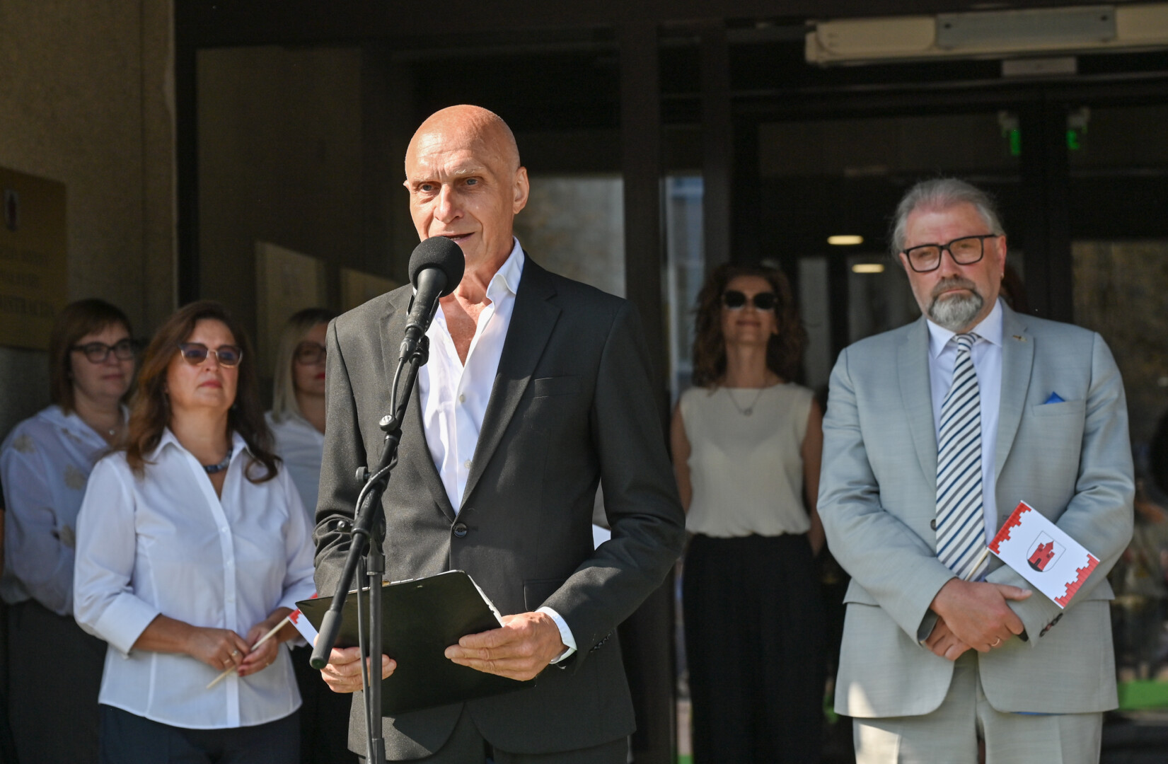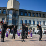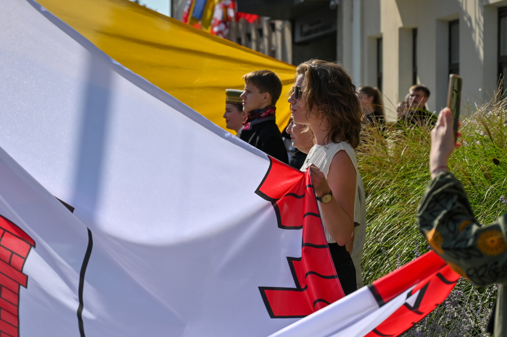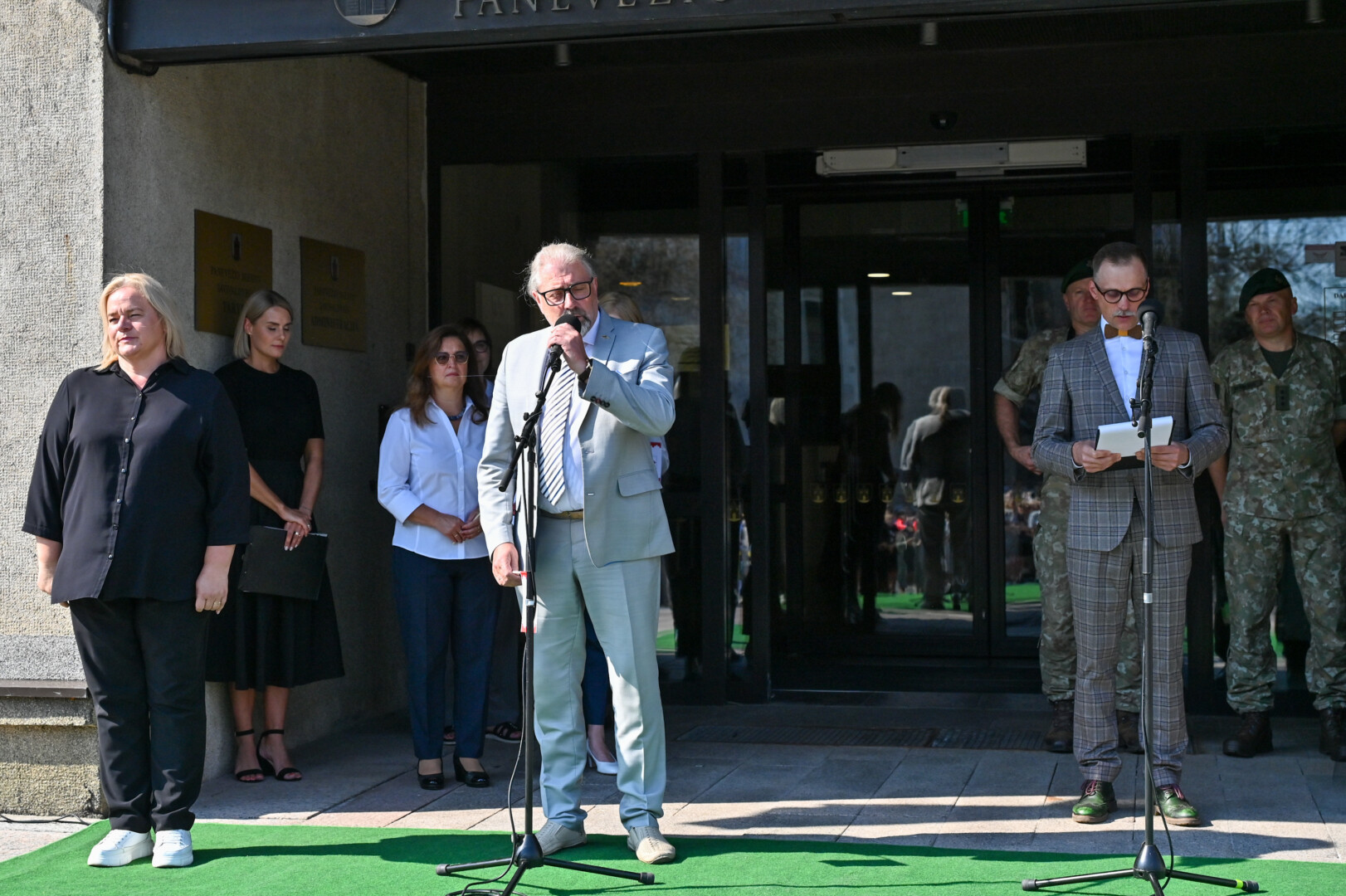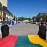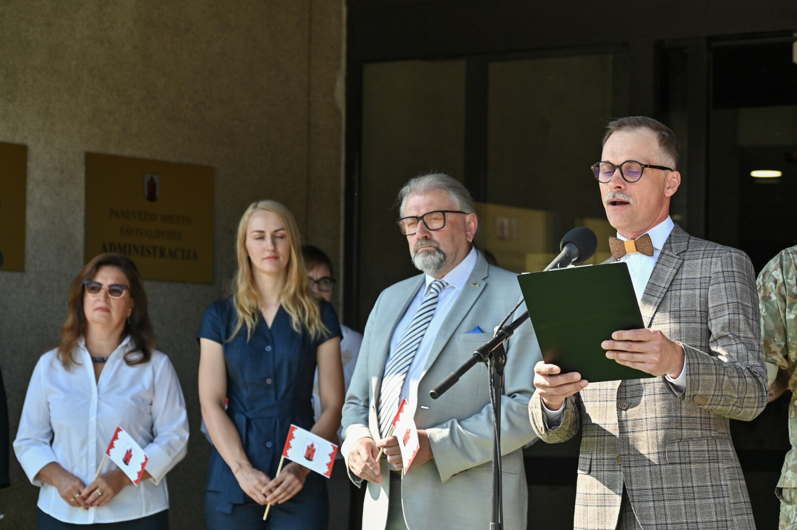 Tradiciškai į Laisvės aikštę miesto vėliavą įnešė Metų panevėžiečiai, kuriais 2023-iaisiais išrinkti Renata Burbaitė, Kotryna Nekrošiūtė, Daria Panina ir Albinas Kėleris.