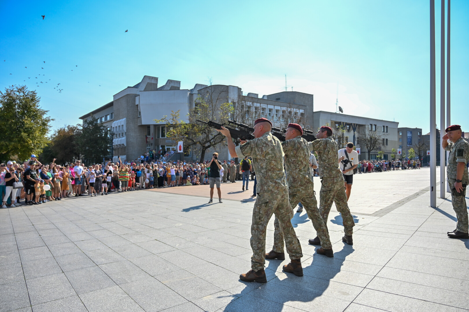 Prie miesto Savivaldybės vykusios vėliavos kėlimo ceremoniją vainikavo Krašto apsaugos savanorių pajėgų Vyčio apygardos 5-osios rinktinės trijų šūvių salvė už Lietuvą, už Panevėžio miesto įkūrėją kunigaikštį Aleksandrą, už Panevėžį ir jo žmones.