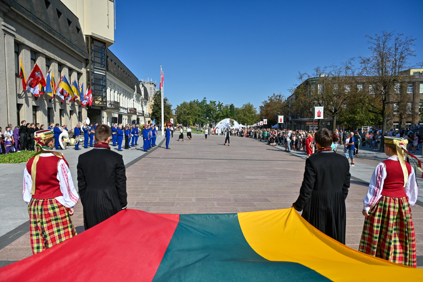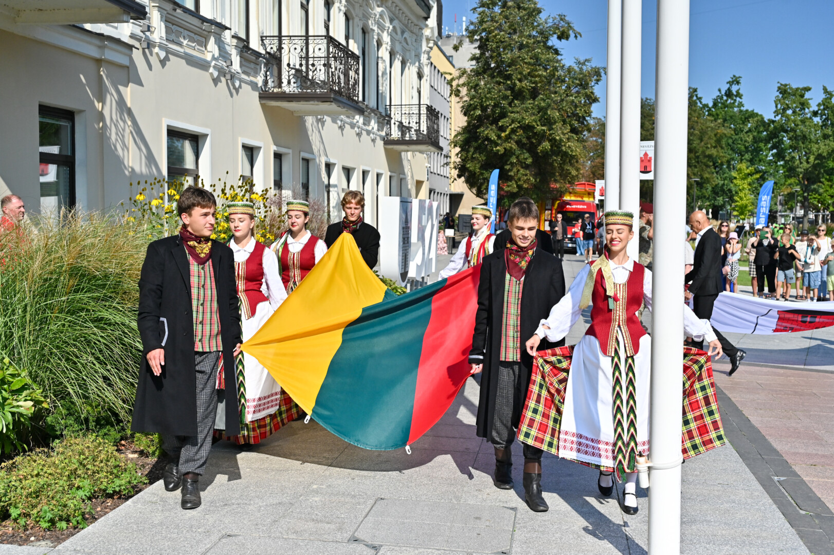 Vėliavos kėlimo ceremoniją vedė Andrius Povilauskas, muzikinius kūrinius atliko solistė Laima Česlauskaitė, koncertavo Panevėžio muzikinio teatro pučiamųjų orkestras „Garsas“, pasirodymą surengė šokių kolektyvas „Tavo Fortūna“.