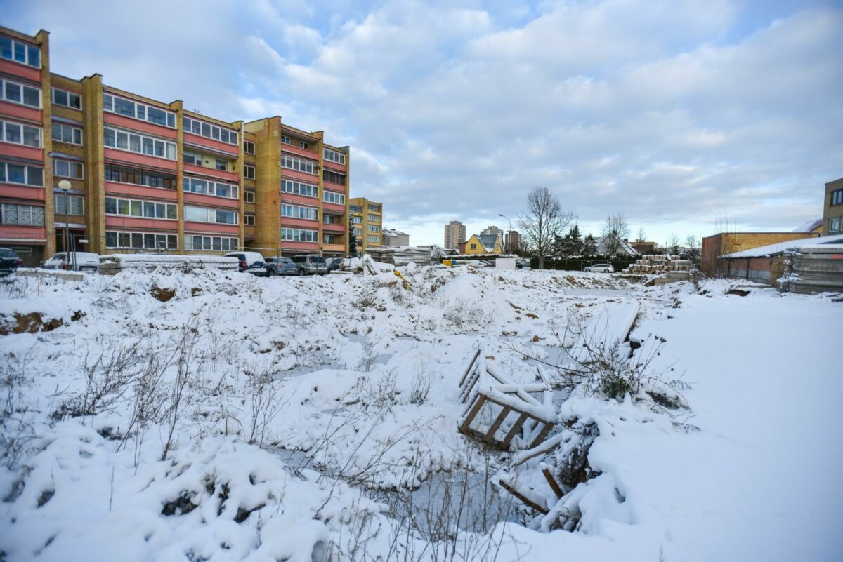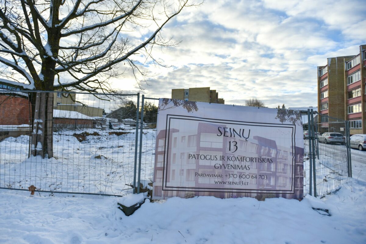 Seinų gatvėje dygsta keturių aukštų pastatas su administracinėmis ir gyvenamosiomis patalpomis. Kol kas prie naujosios statybvietės matyti tik plati iškasta duobė ir betono blokų krūvos aplinkui.