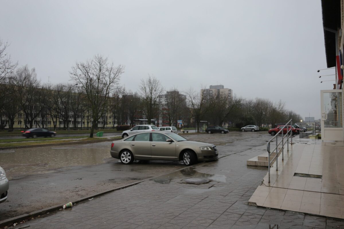 Pastarasis, anot Klaipėdos g. 79 pastate įsikūrusių kone dešimties įmonių atstovų, vėl darbavosi prieš keletą savaičių. Tačiau dabar gana didelėje automobilių stovėjimo aikštelėje vėl plyti balos.