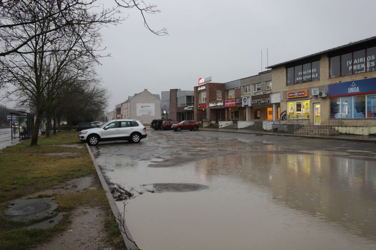 „Žmonėms sunku išlipti iš mašinos, mauroti iki mūsų. Į vidų nešasi purvas, tenka po keturis penkis kartus per dieną plauti“, – pasakojo Klaipėdos g. 79 dirbanti vaistininkė.