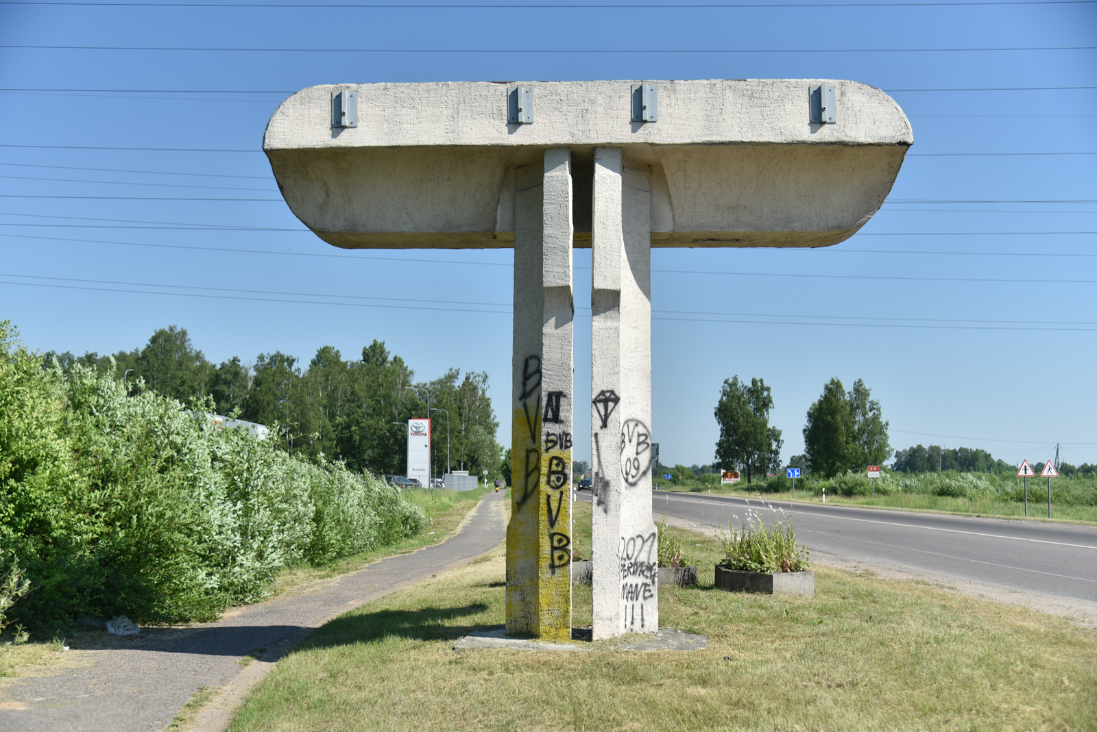 Tokia „vizitinė kortelė“ prie judraus kelio Panevėžys – Ryga atsirado miesto ženklą išniekinus vandalams.