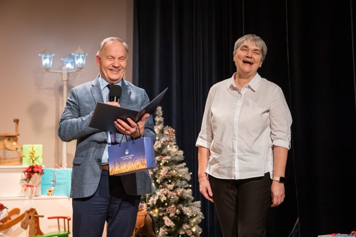 Įžiebus eglę, linksmybės persikėlė į miestelio kultūros centrą: išpuoštoje salės scenoje skambėjo sveikinimai ir padėkos, ansamblių „Raskila“ ir „Alkupis“ dainos, džiugino nuotaikingas Aušros ir Ramūno Difartų koncertas.