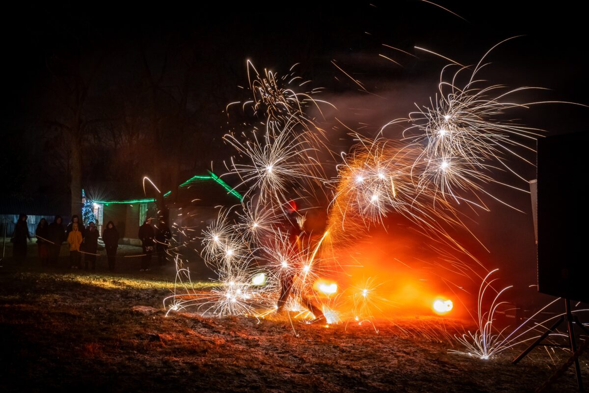 Miestelio bendruomenė ir svečiai džiaugėsi įspūdinga pramogine programa: traukė kalėdines dainas kartu su grupe „Pilnatis“, gėrėjosi studijos „Liepsnose“ surengtu ugnies šou.