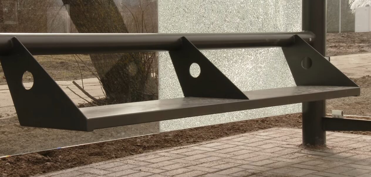 Nors stotelės Alytuje dar tik baigiamos montuoti, vieną stiklo plokštumą jau reikia keisti – ji sudaužyta.