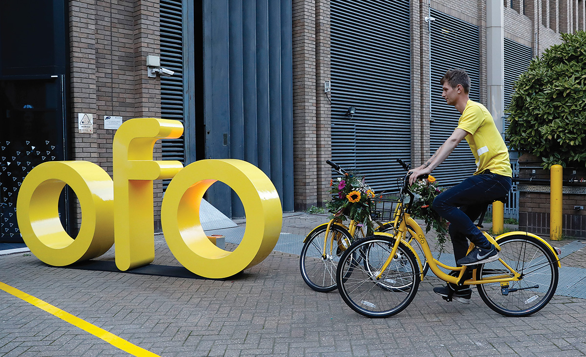 Dėl dviračių Kinijos dalijimosi ekonomikos rinkoje vyksta labai nuožmi kova. Besivaržančios šio sektoriaus vienaragės „Ofo“ ir „Mobike“, abi vertos po maždaug 3 mlrd. JAV dolerių, kuklųjį dviratį pavertė išmaniu įrenginiu, sujungtu su debesija. Didžiuosiuose Kinijos miestuose pilna ryškiaspalvių dviračių, kuriuos siūlo įvairiausi konkurentai. Kadangi sekimo technologijos leidžia atsisakyti specialių terminalų, dviratį galima pasiimti ir palikti bet kur. Dėl šio patogumo atsiranda naujų spręstinų problemų. „Ofo“ pirmoji bando kreditingumo vertinimo sistemą, apdovanojančią pavyzdingus naudotojus ir baudžiančią nepaklusniuosius, pavyzdžiui, mėgstančius palikti dviratį viduryje kelio.