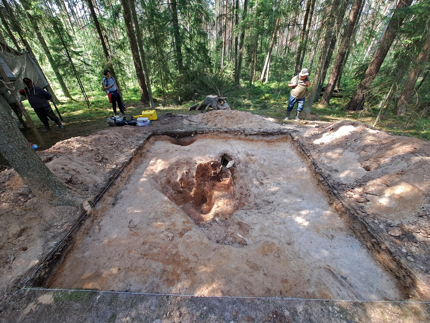 Atidengta landa po eglės šaknimis ir 1,1–1,2 metro gylyje – duobė.