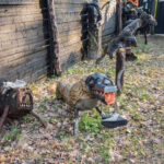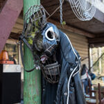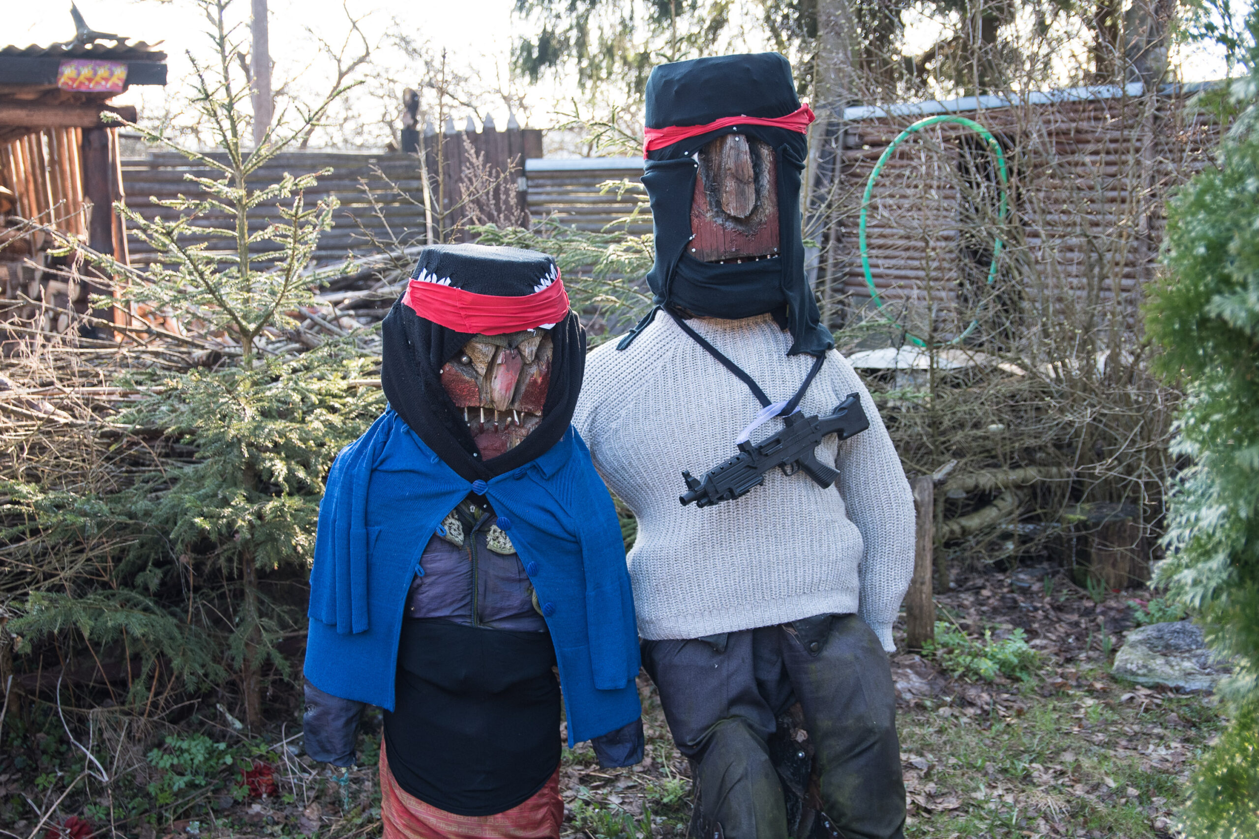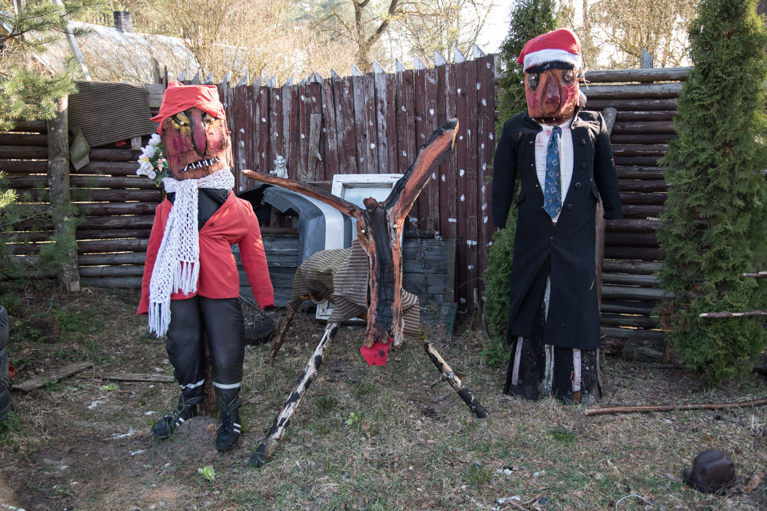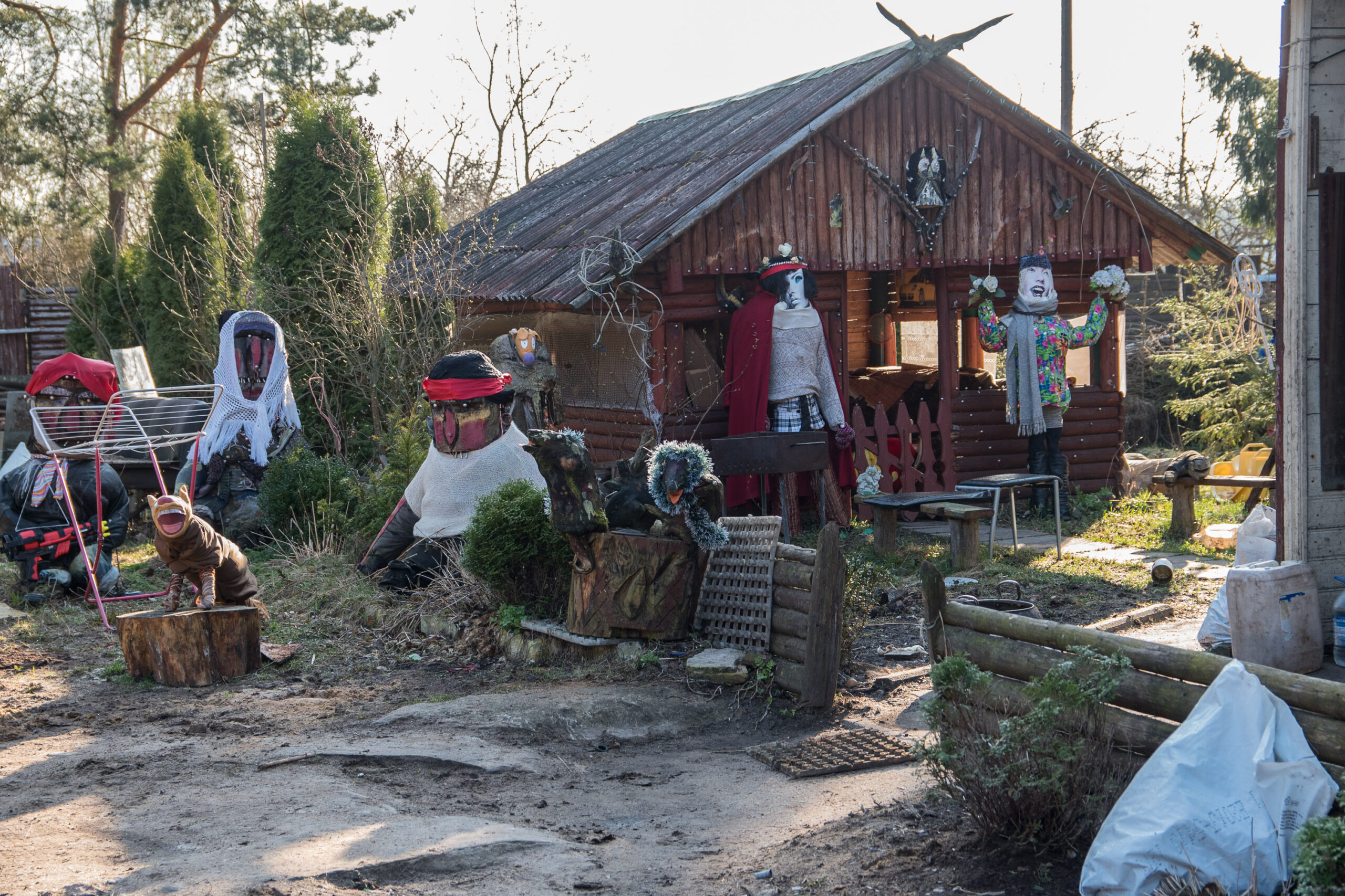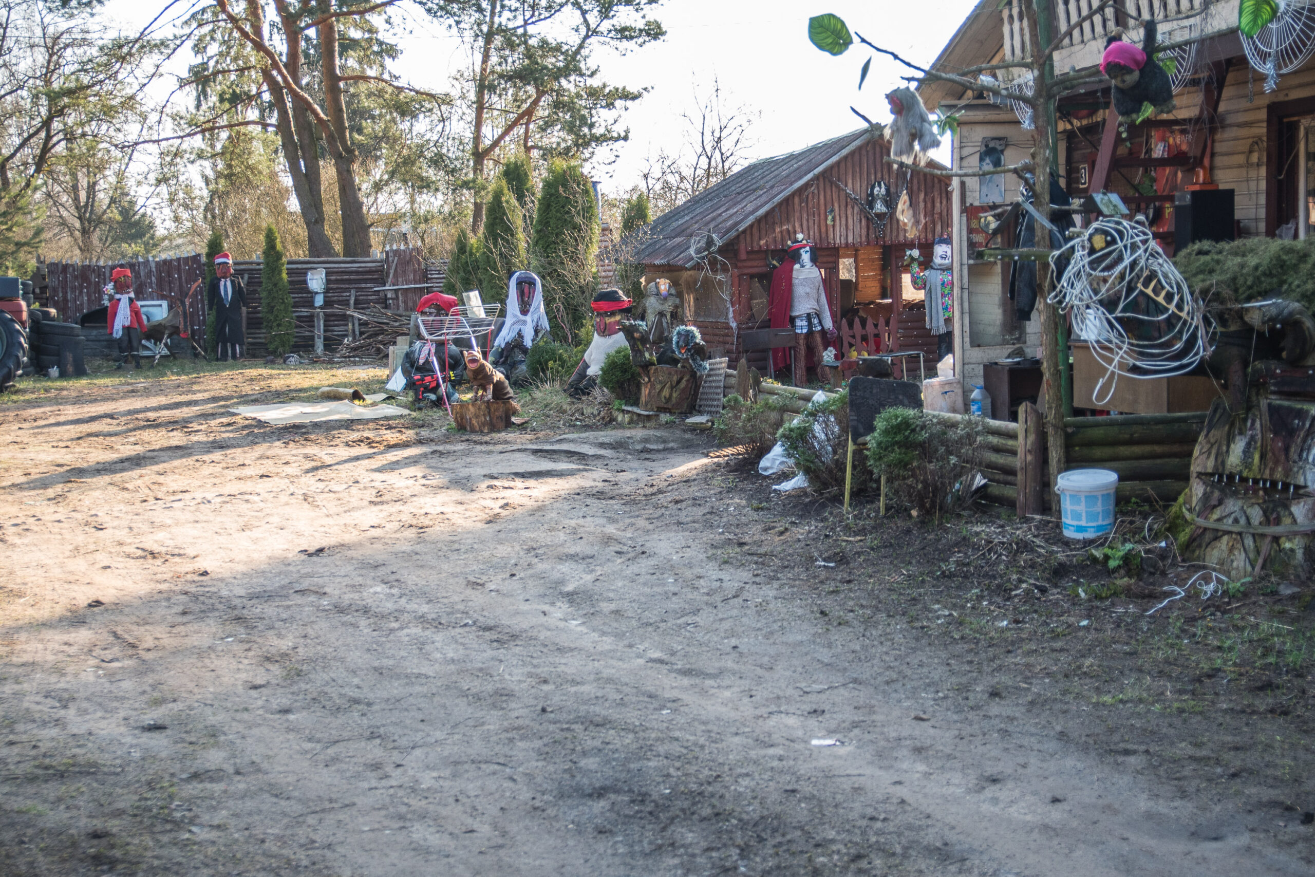 Emocijų užlietas šeimininkas varstė visas savo keisto kiemo pašiūrių, garažų, sandėliukų duris ir bandė įrodyti, kad minėtus statinius saugančios makabriškos skulptūros neslepia jokio šunų žudiko.