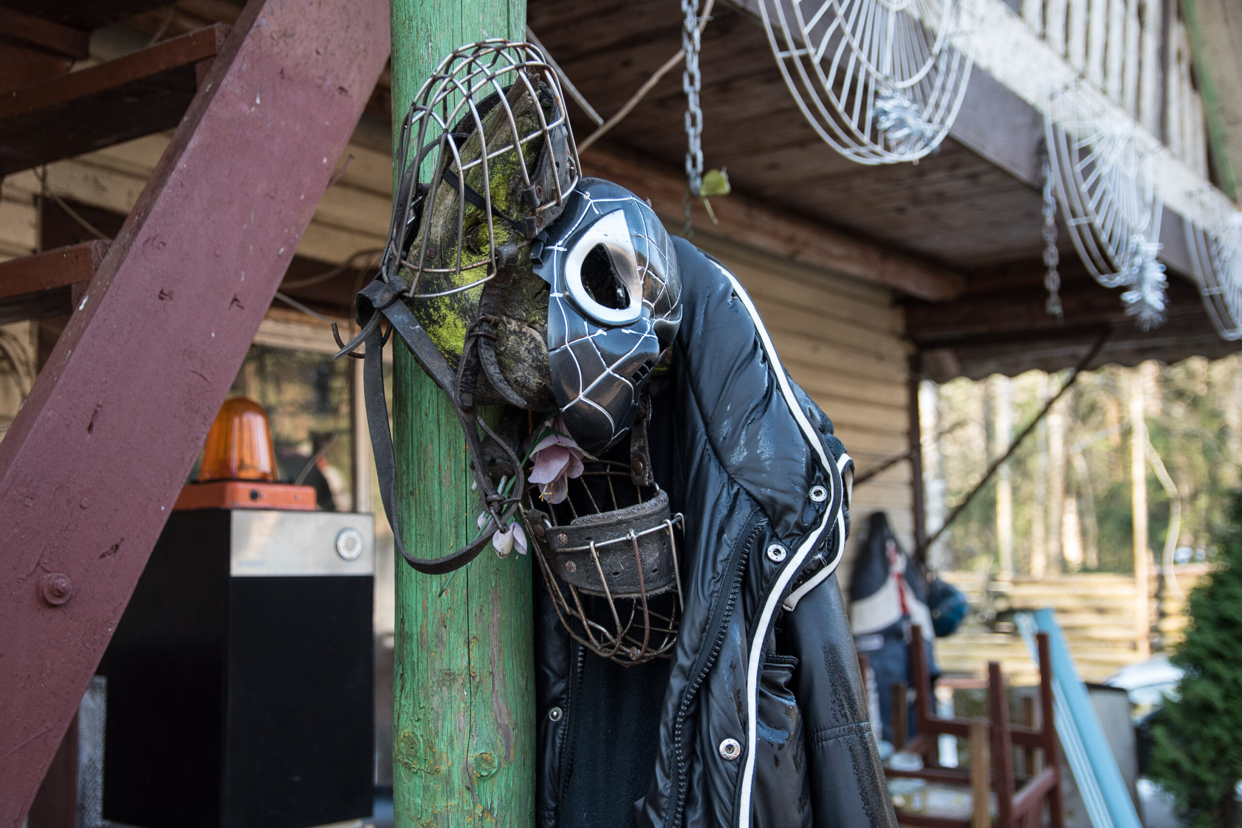 Pasiekus ją, kelią užstoja aukšti juodi vartai, kuriuos saugo vudu lėles menančios didelės skarmaluotos medinės skulptūros. Per tvorą matyti tik jos viršų vietomis juosiančios vielos bei medinė būdelė lyg koncentracijos stovykloje.