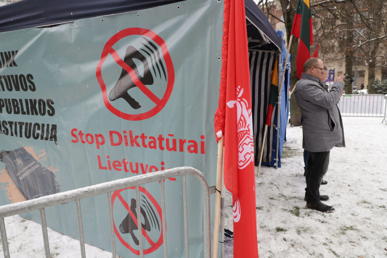 „Mūsų kolektyvo mintis, kad šiandien čia stovi dvi palapinės, o aš tikiuosi, kad per šitą laikotarpį Vilniaus savivaldybė gaus prašymų papildomam palapinių statymui. Trauktis jau žmonėms nėra kur (…), mes suderinome praktiškai iki Kalėdų, ir dabar tie, kurie nepatenkinti, prašau atvykite ir sprendžiame klausimą“, – kalbėjo mitingo organizatorius.