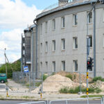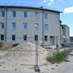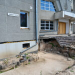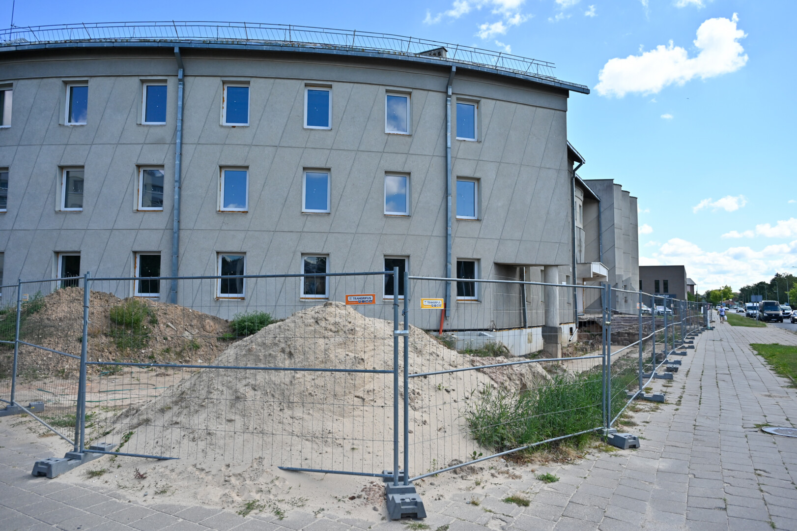 Prie „Sodros“ pastatą juosiančios statybinės tvoros, suręstos ant Vasario 16-osios gatvės šaligatvio, pritvirtintas tentas informuoja, kad remontas pradėtas 2023 metų III ketvirtį, o bus baigtas 2025 metų II ketvirtį.
