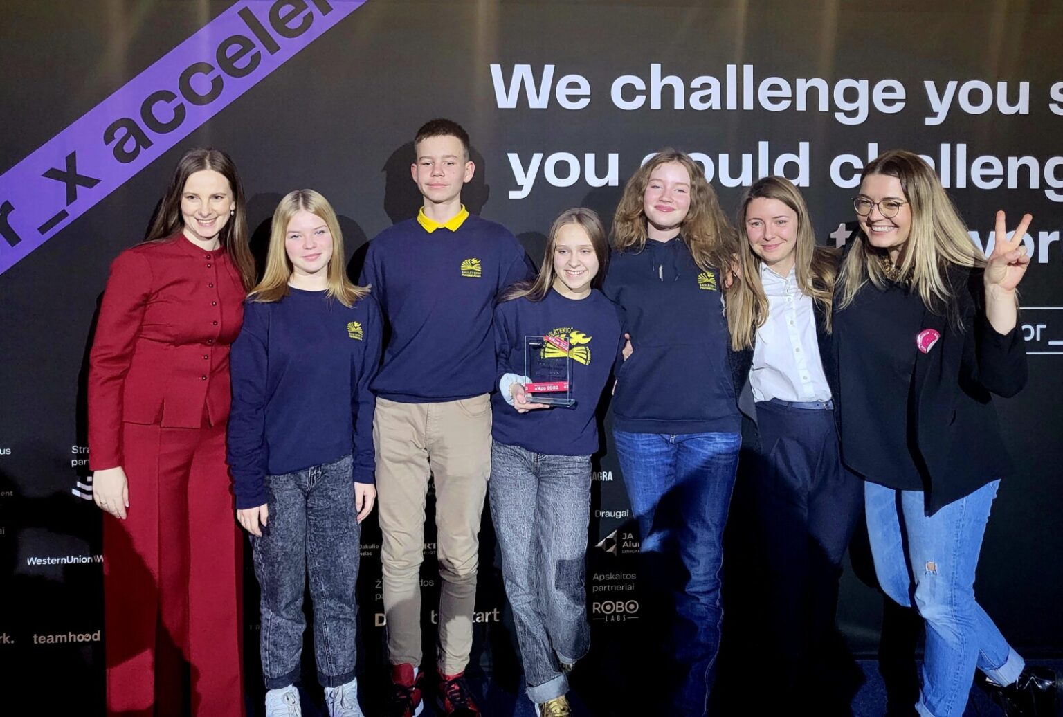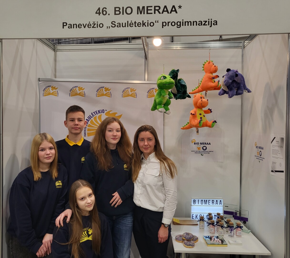 Komandą sudaro keturi Panevėžio „Saulėtekio“ progimnazijos septintokai – Andrėja Paltanavičiūtė, Auksuolė Lisauskaitė, Rėjus Šmigelskis ir Emilija Jankauskaitė su verslumo ugdymo mokytoja Agne Šidlauskaite priešakyje.