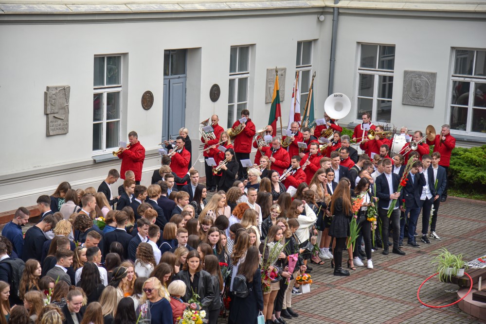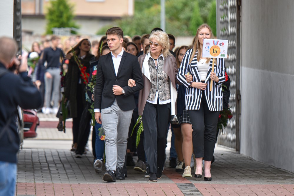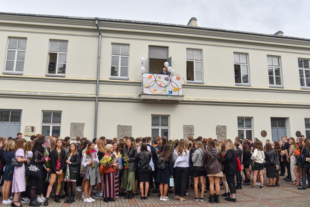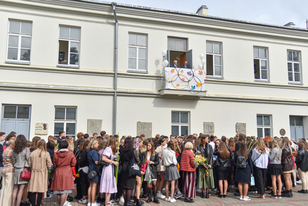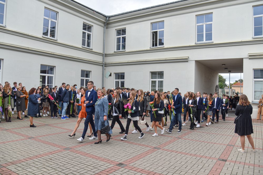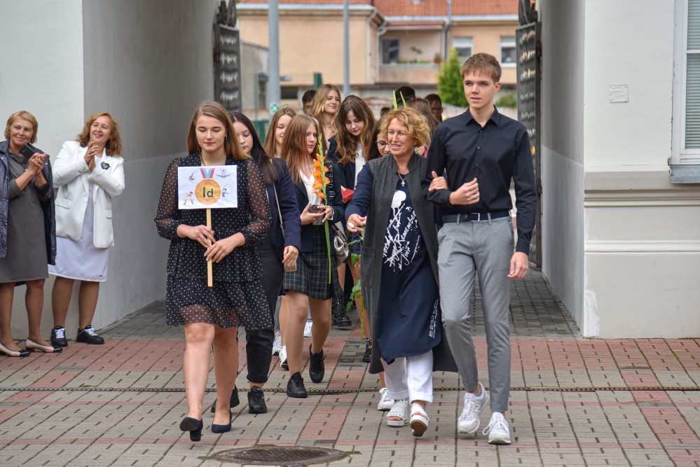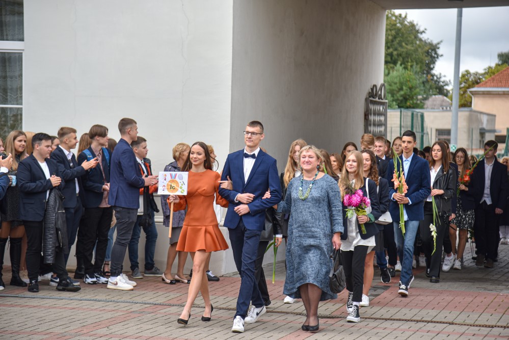 „Įprasta moksleivius sutikti sveikinimo kalbomis, bet mūsų mokykla nutarė, kad šiemet mažiau kalbėsime, daugiau šoksime. Žinia, šokome ne polką su ragučiais, o tai, kam mus „užvedė“ didžėjus“, – kalbėjo gimnazijos direktorė Emilija Kriščiūnaitė.