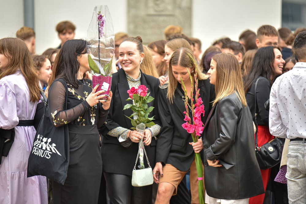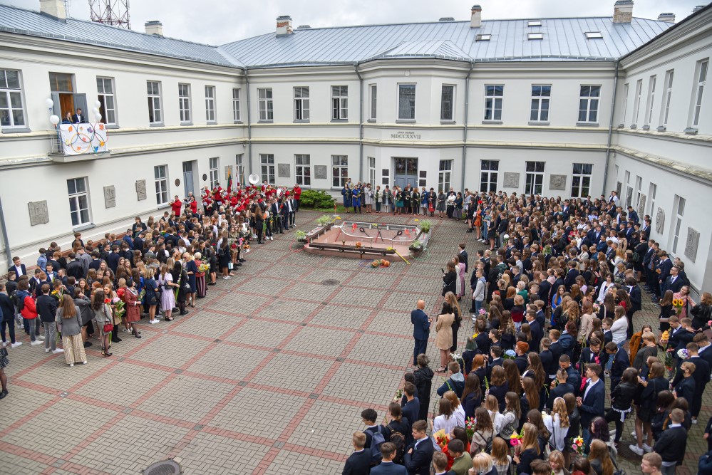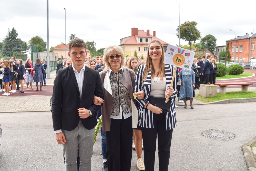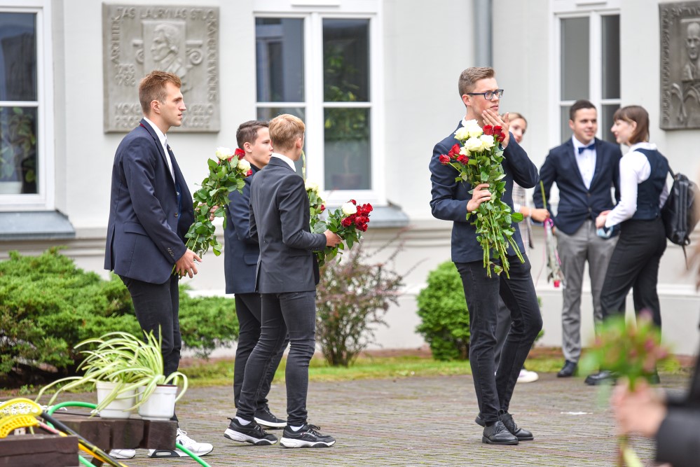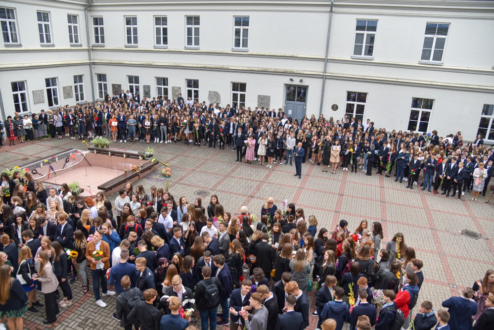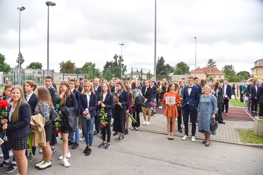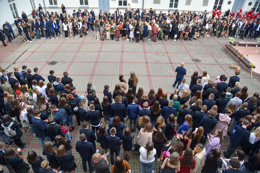 „Įprasta moksleivius sutikti sveikinimo kalbomis, bet mūsų mokykla nutarė, kad šiemet mažiau kalbėsime, daugiau šoksime. Žinia, šokome ne polką su ragučiais, o tai, kam mus „užvedė“ didžėjus“, – kalbėjo gimnazijos direktorė Emilija Kriščiūnaitė.