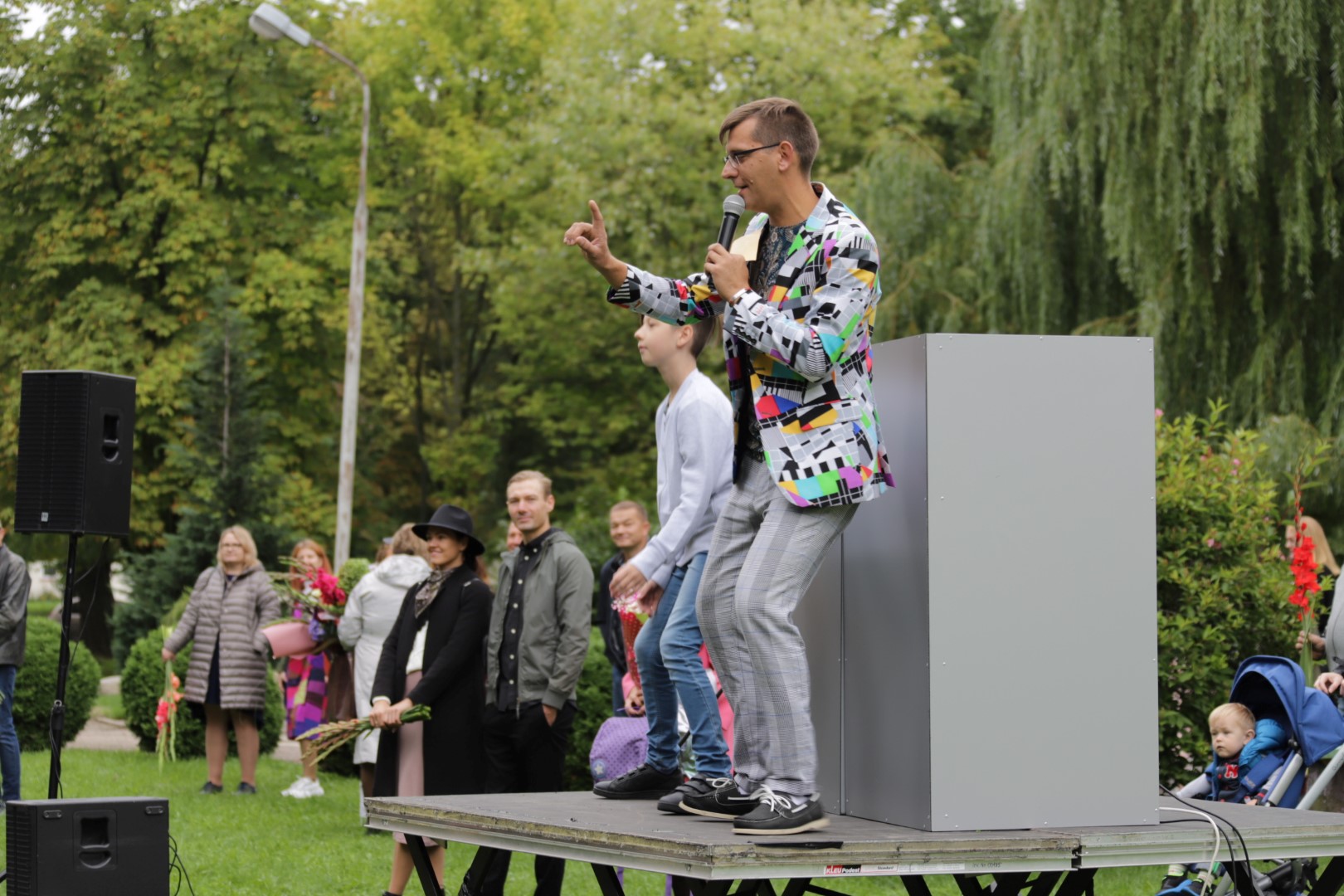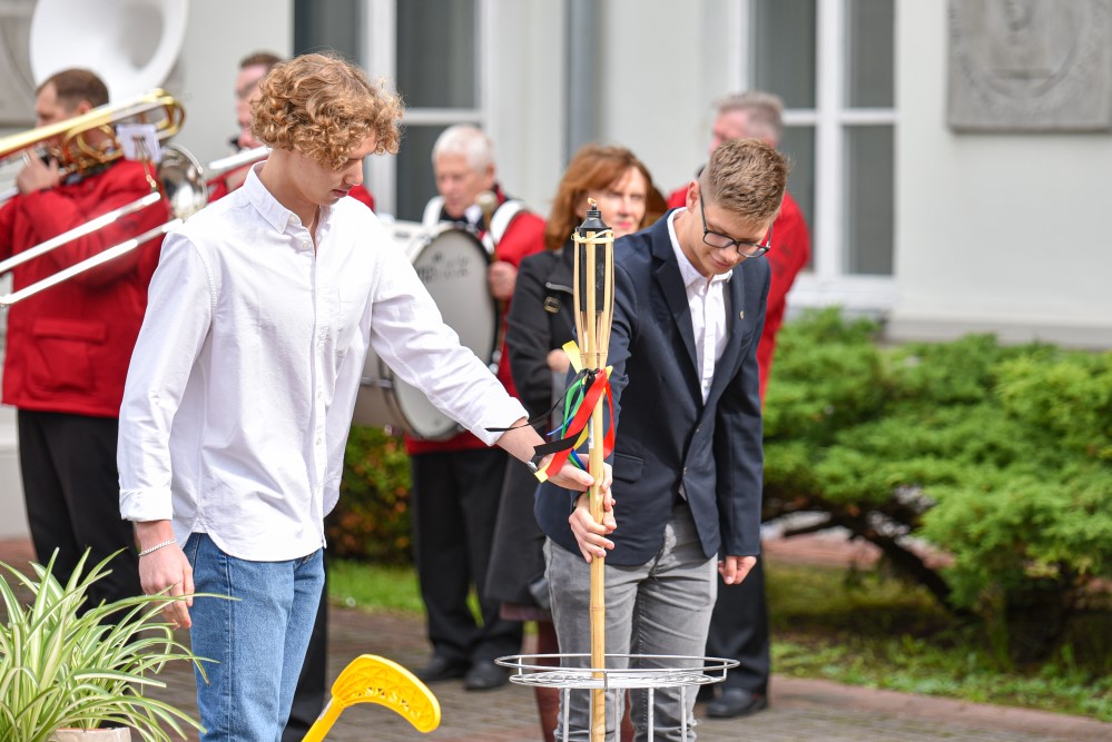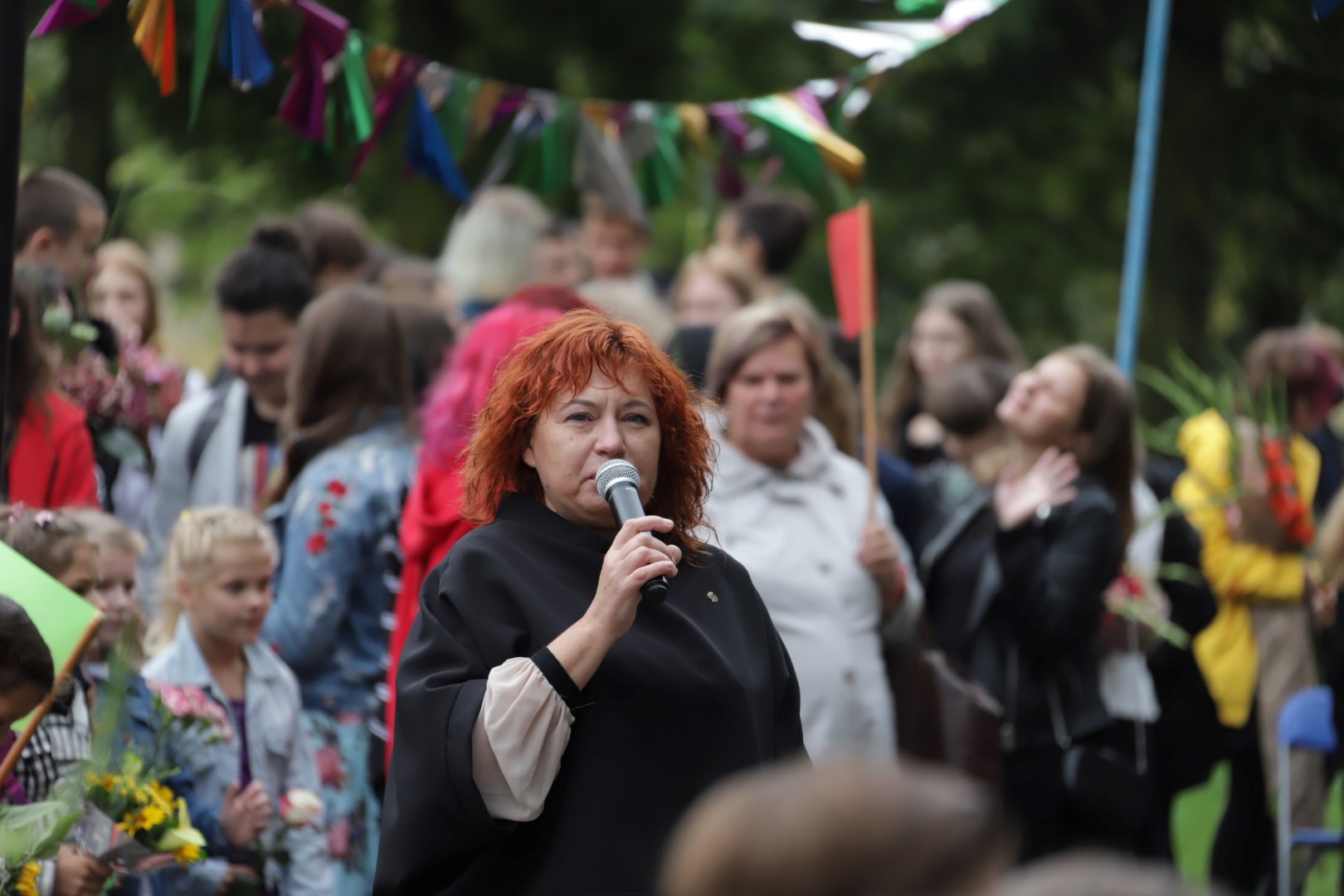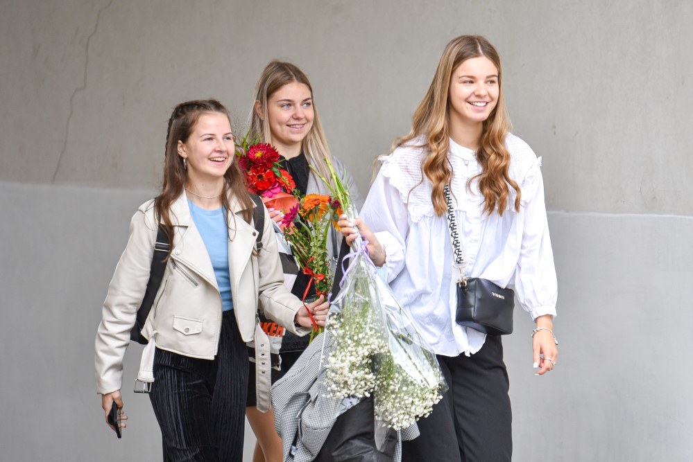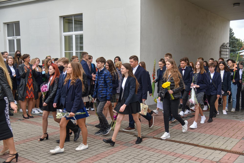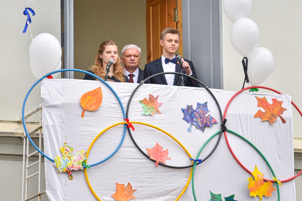 „Įprasta moksleivius sutikti sveikinimo kalbomis, bet mūsų mokykla nutarė, kad šiemet mažiau kalbėsime, daugiau šoksime. Žinia, šokome ne polką su ragučiais, o tai, kam mus „užvedė“ didžėjus“, – kalbėjo gimnazijos direktorė Emilija Kriščiūnaitė.