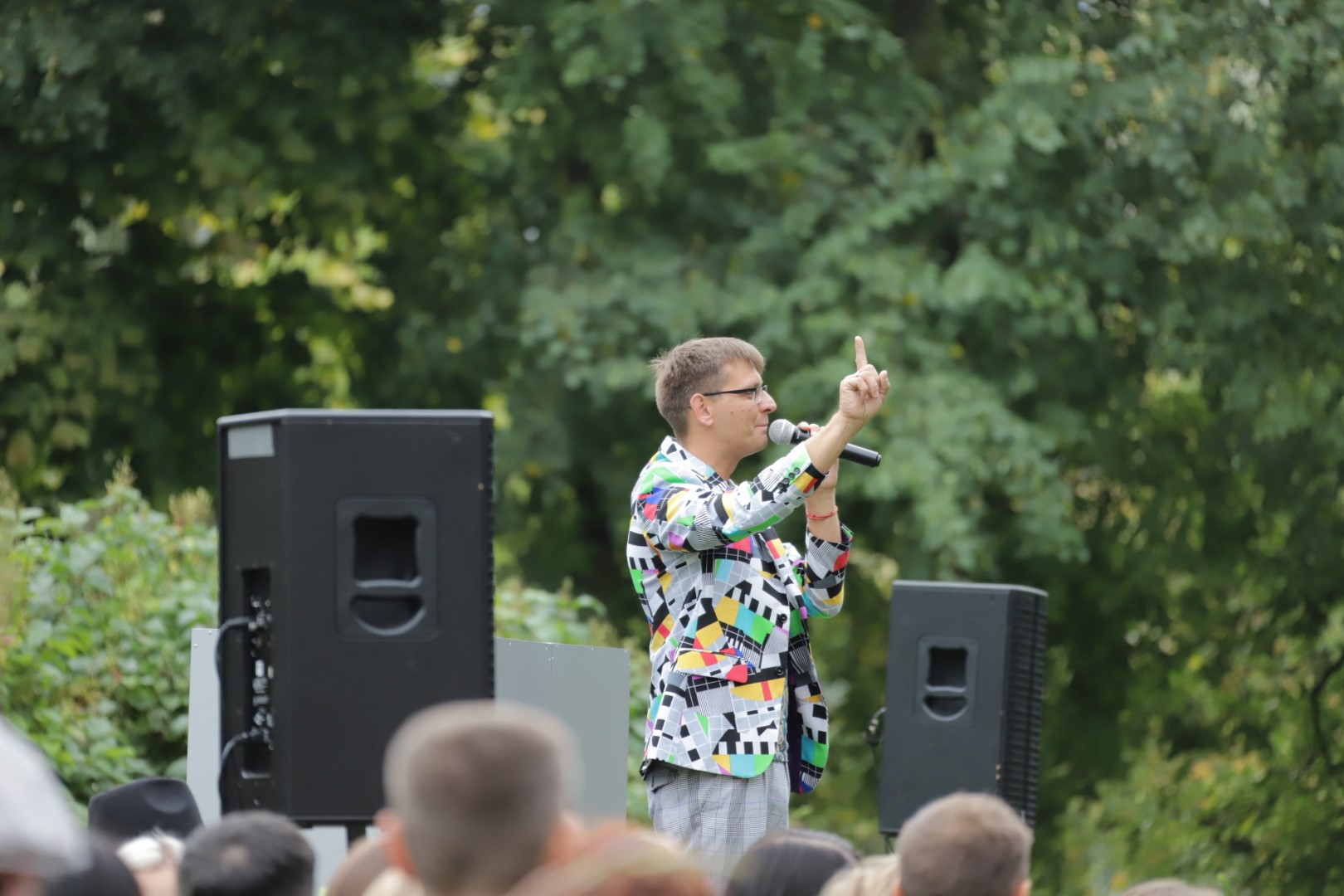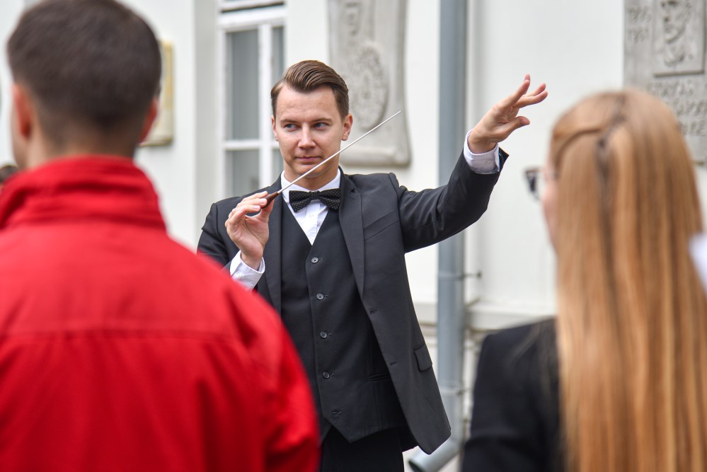 Į šventę susirinkusių Vytauto Mikalausko menų gimnazijos gimnazistų šiemet laukė staigmena. Mokslo metai šioje mokykloje pradėti ne sveikinimo žodžiais, bet diskoteka, o vedė ją didžėjus Valdemaras Liudvinavičius, šią mokyklą lankančios aštuntokės Austėjos tėtis.