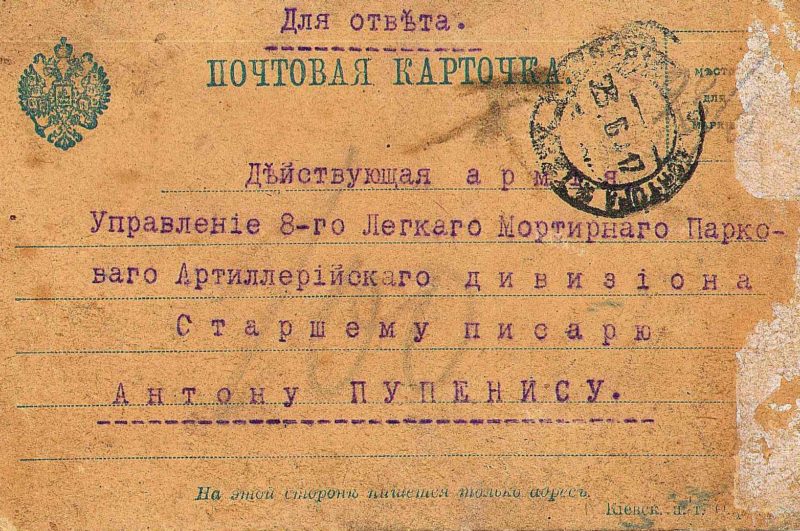 Kalbantis su mokytoja pro akis niekaip negali praslysti vienas labai įdomus dokumentas, kurį ji būtinai nori parodyti. Tai pageltęs nuo laiko atvirlaiškis, rašytas Laimos tėčiui Antanui Pupieniui, kuris per pirmąjį pasaulinį karą tarnavo kariuomenėje vyresniuoju raštininku. Sunkoka įskaityti ar tai 1914 ar 1917 metų dokumentas, bet viena aišku, kad jis Laimos tėčiui buvo siųstas nuo pusbrolio Vlado Lašo (1892-1966), vėliau nusipelniusio Lietuvos medicinos ir visuomenės veikėjo, o tuomet tarnavusio kariuomenėje. Tai jau muziejinis eksponatas, kurį mielai priglaustų koks muziejus Lietuvoje. Kažkada to atvirlaiškio labai norėjo Kauno klinikos, kur V.Lašas dirbo, bet mokytoja su juo tuomet dar nenorėjo atsisveikinti. Dabar šį dokumentą ji pasirengusi padovanoti tam, kam jis gali pasirodyti svarbus ir reikalingas.