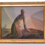 Dvasininko tapytame paveiksle pavaizduota sodyba žiemą. Darbas nutapytas ant faneros aliejiniais dažais 1949-aisiais.