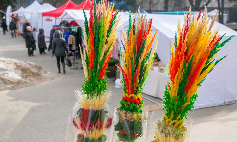 Moteris jau beveik dešimtmetį pina įvairiaspalves verbas, tačiau tvirtino, jog dar turi kur pasitempti. Prekybininkė džiaugėsi, jog šiai mugei nepašykštėta gero oro: nei sninga, nei lyja.