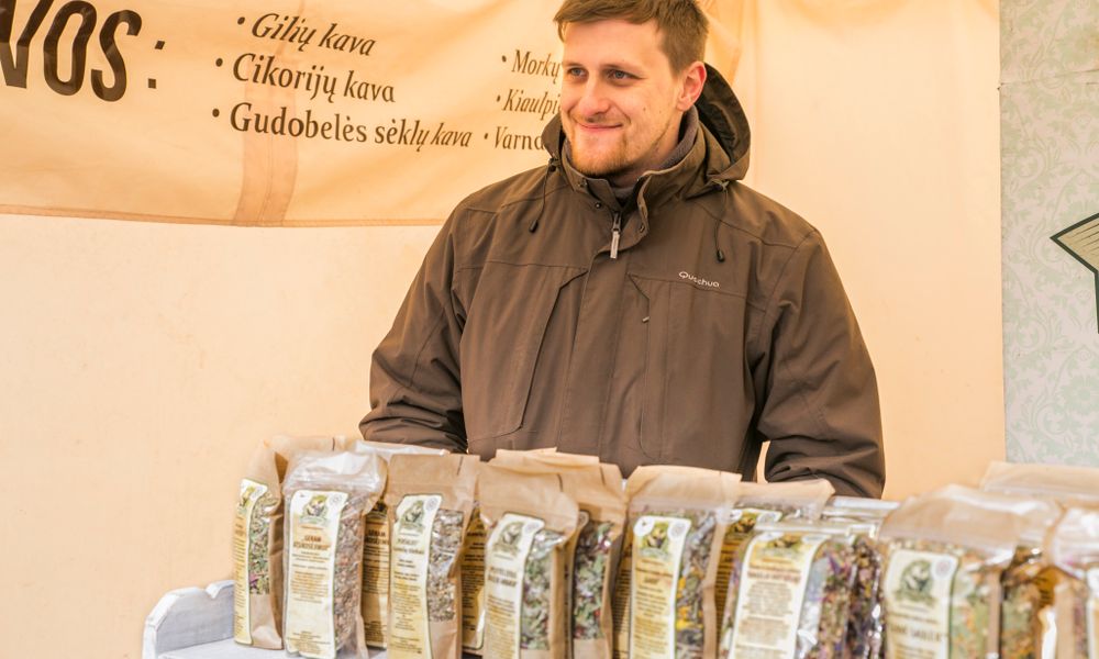 Ramūnas iš Anykščių nusprendė panevėžiečius nustebinti natūraliomis arbatomis ir neįprasta kava. Pastaroji, pasak pardavėjo, pirkėjams kur kas įdomesnė. Natūralių arbatų galima įsigyti ir specializuotose parduotuvėse, o antai gilių, kiaulpienių šaknų kavos retai kur pamatysi parduodant. Už nedidelę pakuotę gardaus gėrimo mėgėjams Ramūnas prašė nuo 3 iki 12 eurų. Tiek mokėti ne visi išgalėjo, ne vienas, išgirdęs kainą, apsisukęs nuėjo tolyn.
