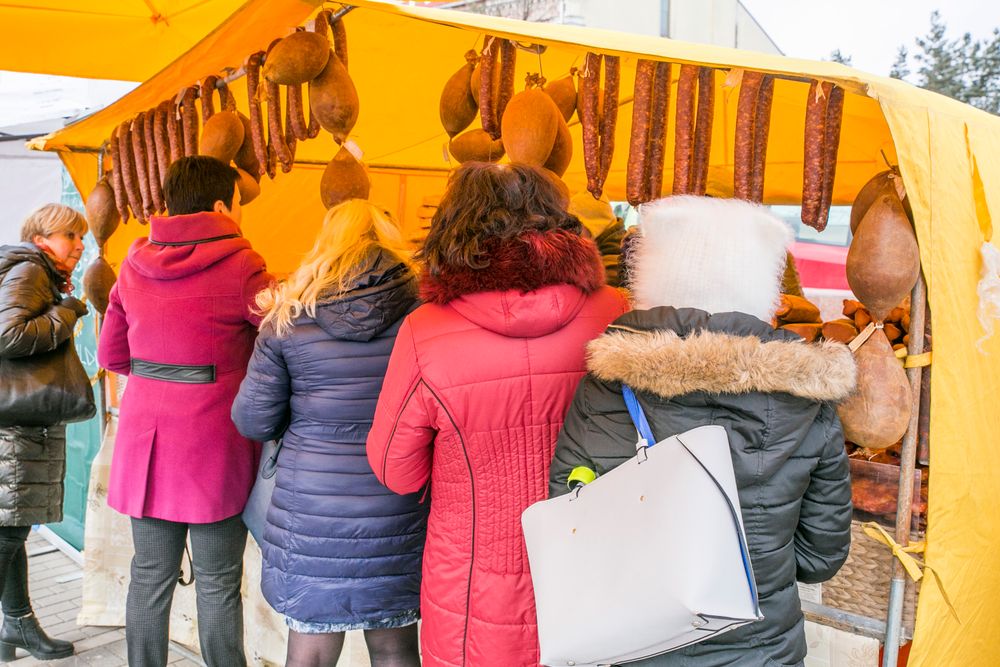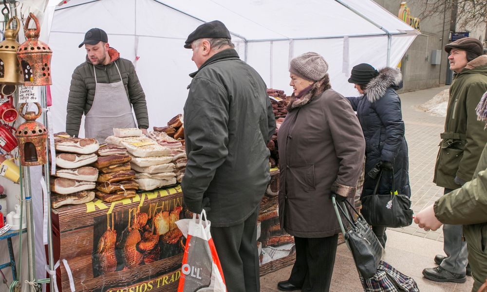 Vienu jų tapo iš Kauno atvykęs Povilas. Šalia prekybininko palapinės nuolat rikiavosi nemažas būrys šalčio nepabūgusių pirkėjų. Žmonės ragavo ir rinkosi iš Kauno atvežtus lašinukus, rūkytas dešras ir kitus mėsos gaminius.