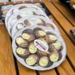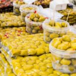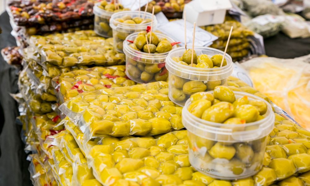 „Įdarytos alyvuogės taip pat mėgstamos. Pusė kilogramo kainuoja 5,5 euro, nes reikia įdėti daugiau darbo. Turime alyvuogių mišinį, alyvuoges su apelsinais, citrinomis, paprika, baziliku“, – vardijo moteris ir pridūrė visą produkciją pati atvežusi iš Graikijos.