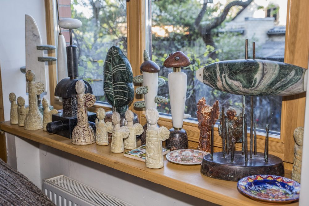 Naujausi – praėjusios žiemos kūrybos rezultatas – ne tik skulptūros bei statulėlės. Didelio kambario grindys nuklotos neseniai vaškine pastele pieštais paveikslais – ryškūs, iškalbingi darbai dar laukia, kada bus įrėminti. Šaltasis metų periodas visas skirtas kūrybai, atsikelia Juozas rytą – ir į dirbtuves.