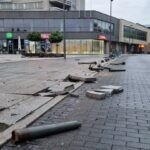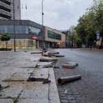 Naktį Panevėžio centre pasiskraidęs girtas vairuotojas nuskynė keliolika apsauginių stulpelių, apgadino kitą automobilį ir dar įvažiavo į stulpą.