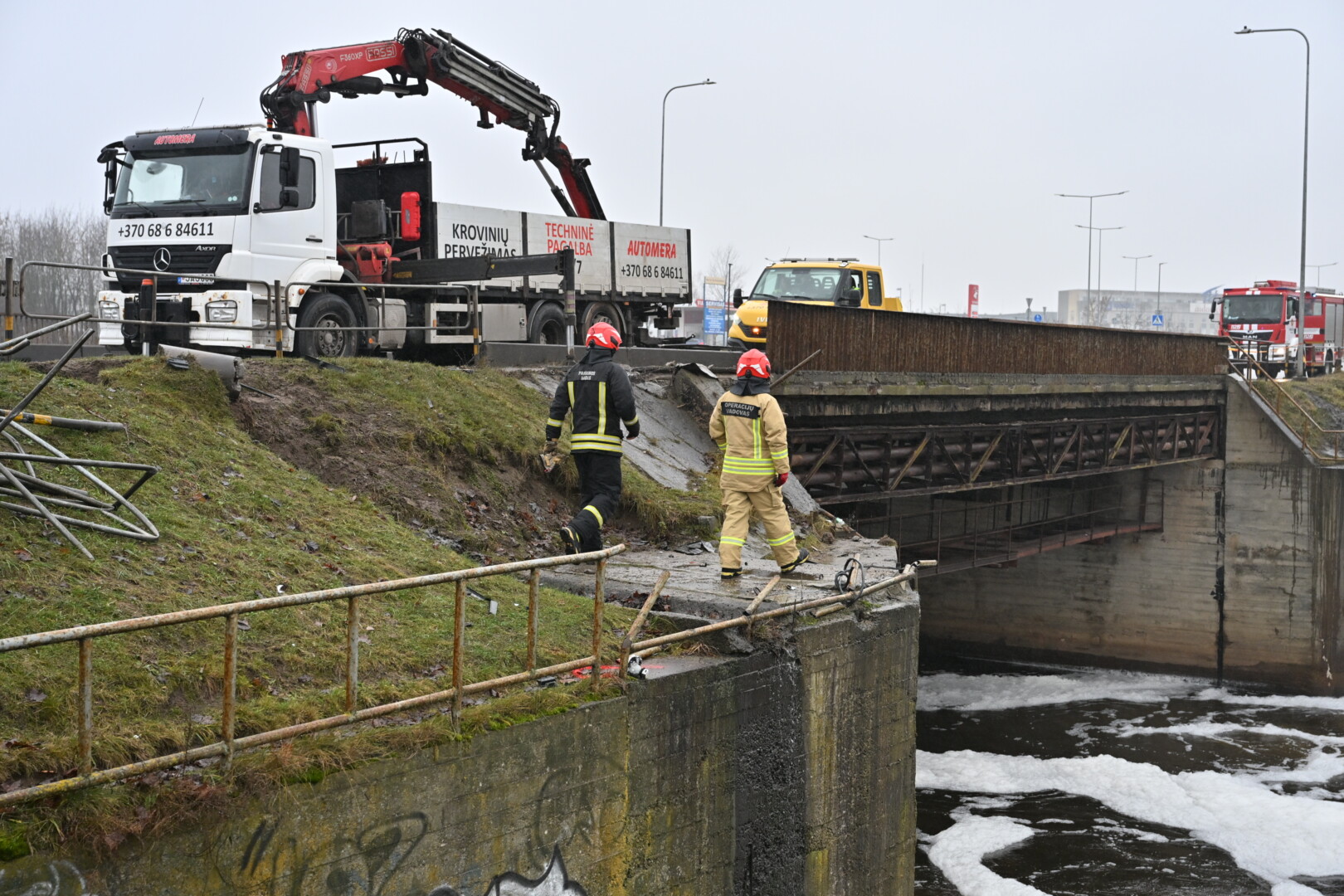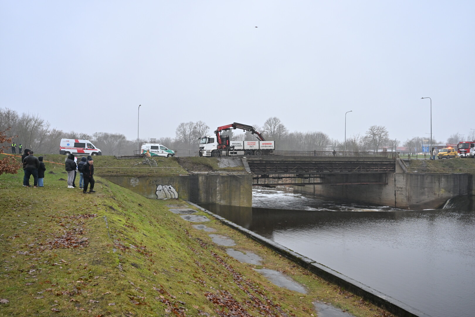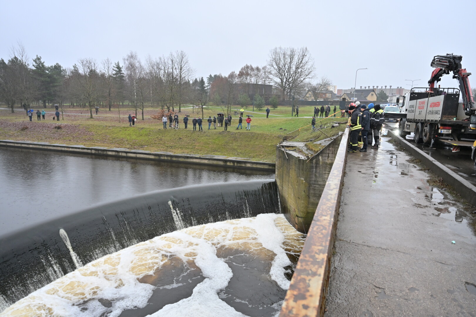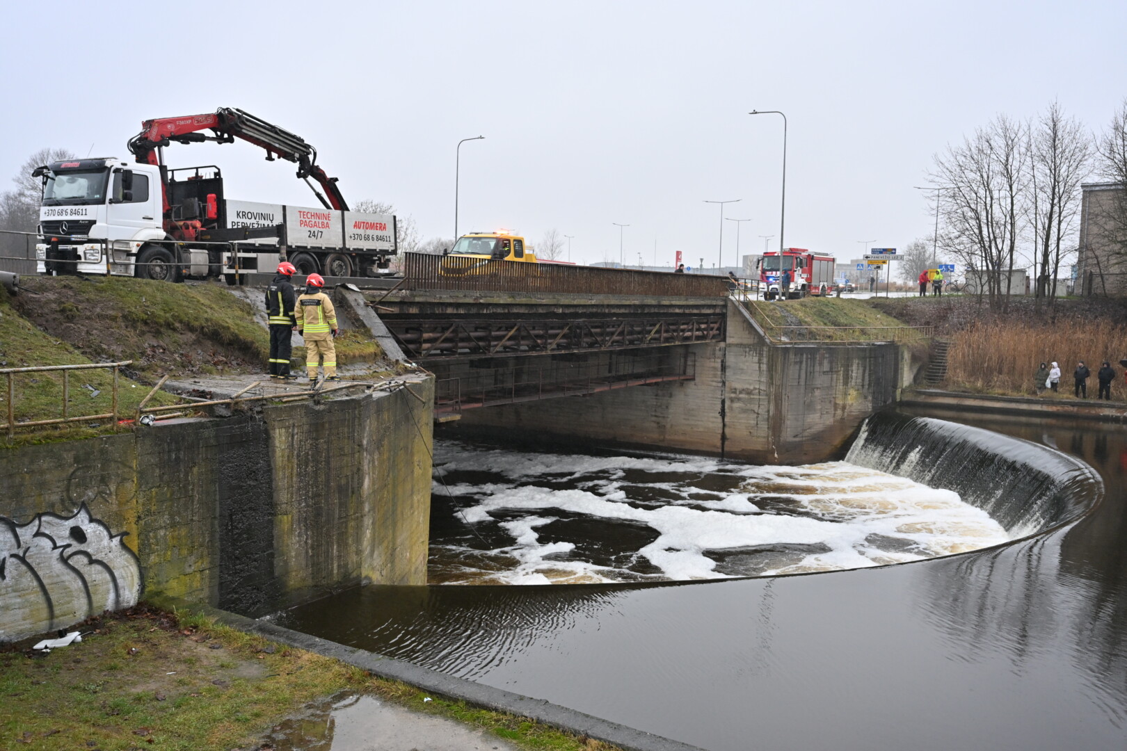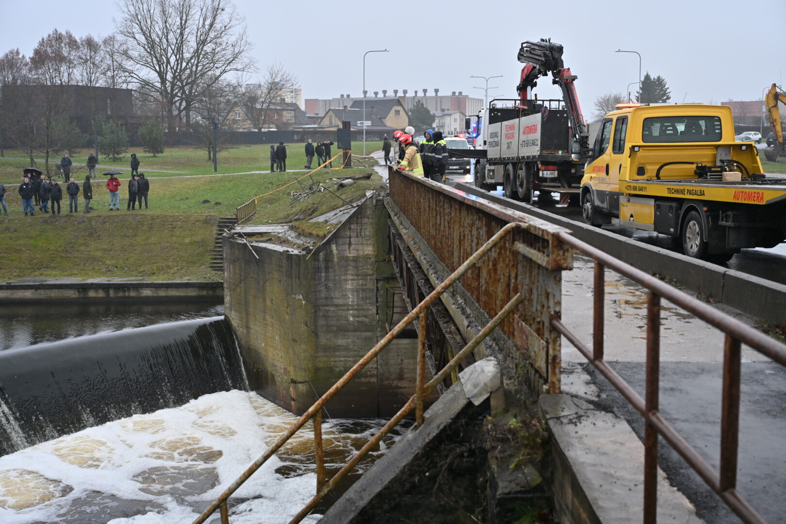 „Kol kas automobilio dėl stiprios upės tėkmės ištraukti neįmanoma. Užtvanka uždaryta aukščiau upės tam, kad būtų sulėtinta upės tėkmė ir vandens lygis. Taigi laukiamas vandens kritimas ir rengiamasi operacijai – automobilio traukimui“, – informavo tarnybos atstovas.