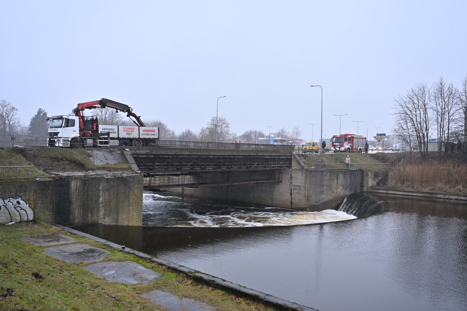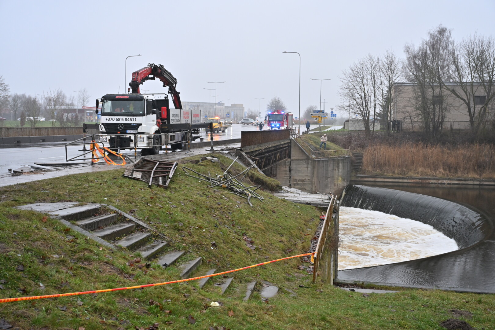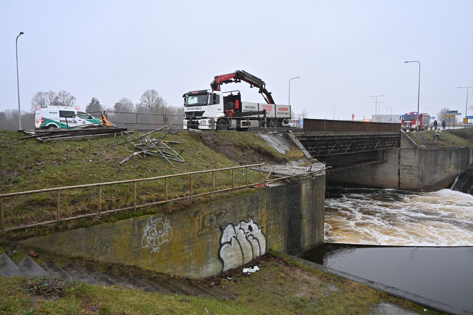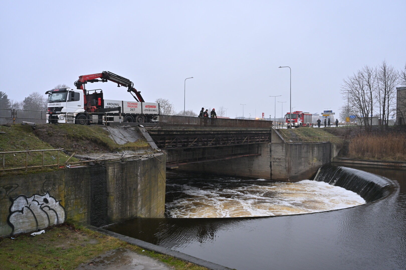 „Kol kas automobilio dėl stiprios upės tėkmės ištraukti neįmanoma. Užtvanka uždaryta aukščiau upės tam, kad būtų sulėtinta upės tėkmė ir vandens lygis. Taigi laukiamas vandens kritimas ir rengiamasi operacijai – automobilio traukimui“, – informavo tarnybos atstovas.