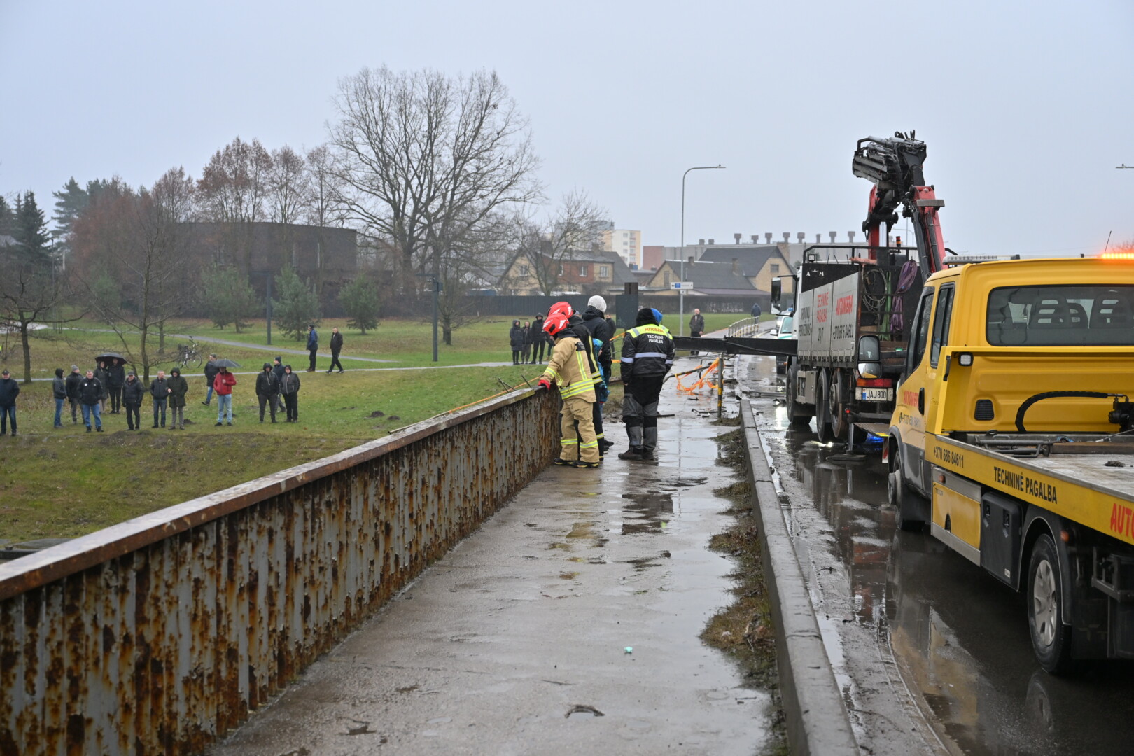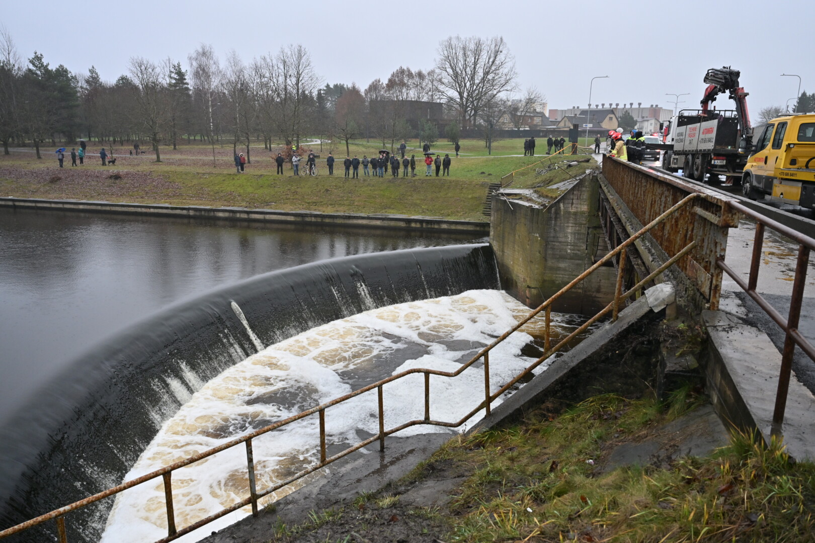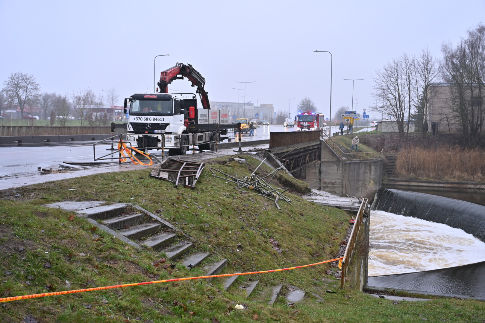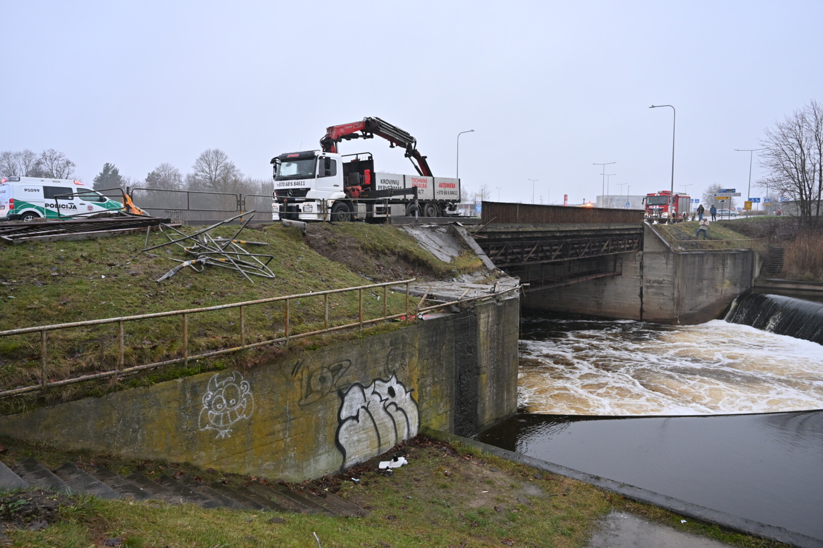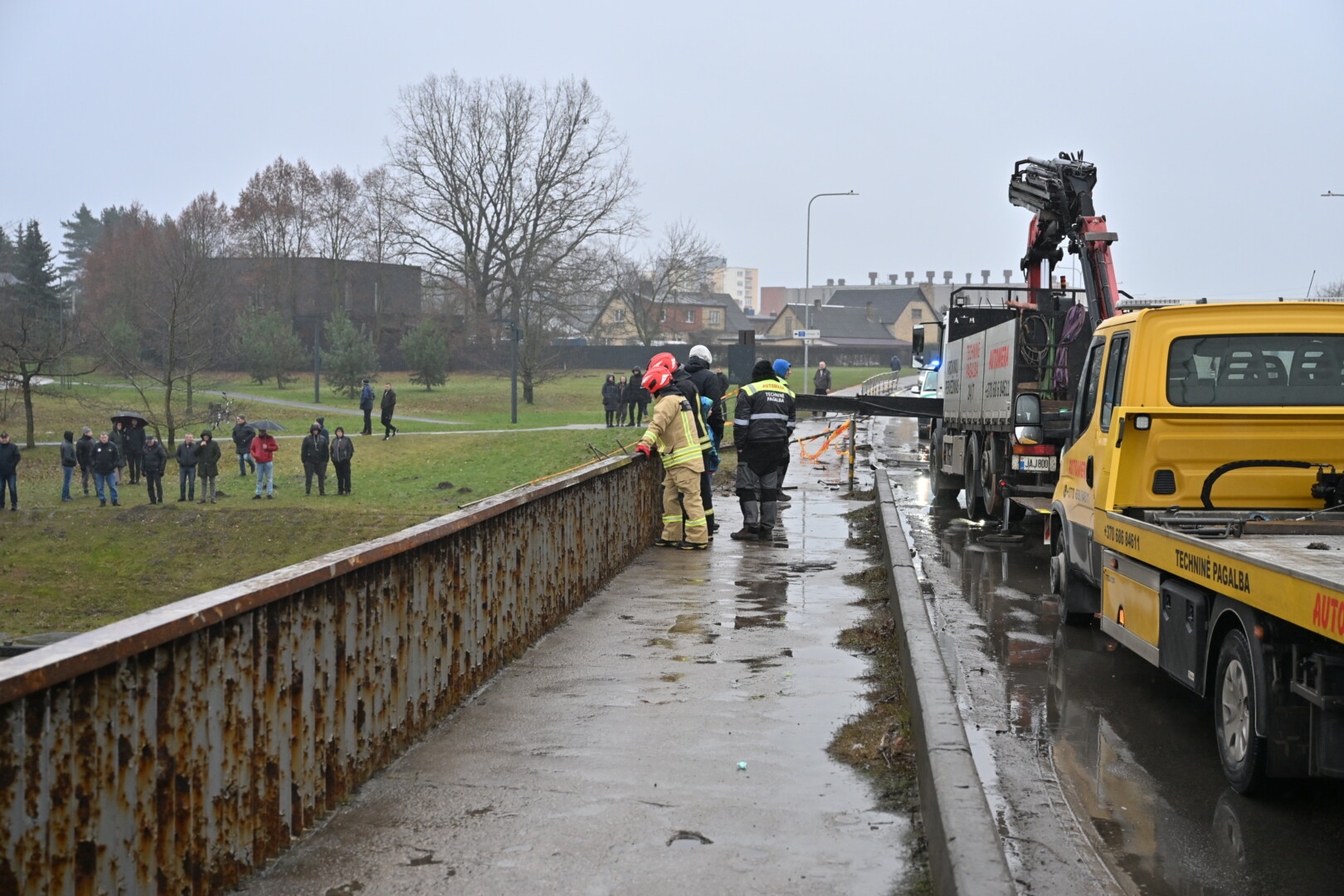 „Kol kas automobilio dėl stiprios upės tėkmės ištraukti neįmanoma. Užtvanka uždaryta aukščiau upės tam, kad būtų sulėtinta upės tėkmė ir vandens lygis. Taigi laukiamas vandens kritimas ir rengiamasi operacijai – automobilio traukimui“, – informavo tarnybos atstovas.