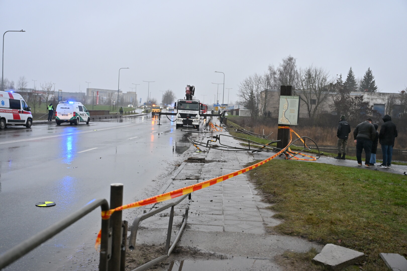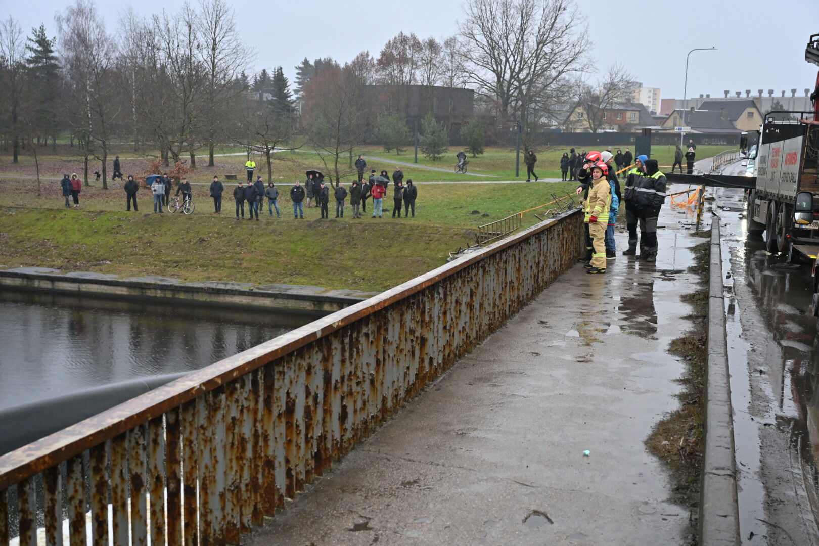 Nepatvirtintais stebėtojų įvykio vietoje duomenimis, BMW markės automobilis atskriejo nuo prekybos ir pramogų centro „Ryo“ pusės Savitiškio gatve, nušlavė prie Vakarinės gatvės esančią apsauginę tvorelę, tilto bei užtvankos atitvarus ir įkrito į vandenį.