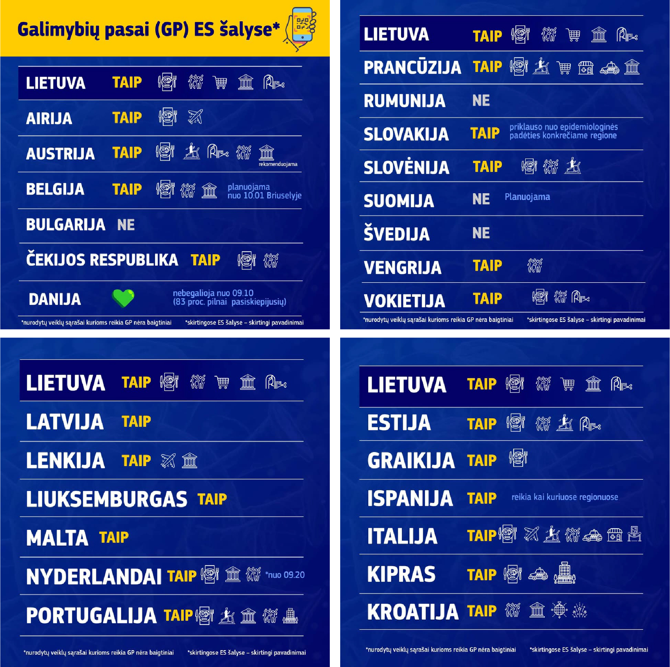 Galimybių pasas – ne naujiena Europoje. Lietuvos nuolatinės atstovybės Europos Sąjungoje ambasadorius ypatingiesiems pavedimams Simonas Šatūnas socialiniame tinkle paskelbė sąrašą šalių, kuriose įvesti panašūs dokumentai.