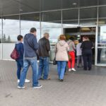 Kiti ramiai laukė, kol bus patikrinti jų dokumentai. Nemaža dalis atėjusiųjų buvo be kaukių – kur įleidžiama su galimybių pasais, kaukės lieka tik rekomenduojamos.