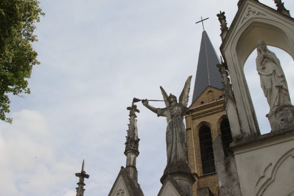 Ant įspūdingų Naujamiesčio bažnyčios vartų esančios dvi didingos angelų figūros tarsi saugo šią vietą nuo didesnių nelaimių. Ir tai ne vieninteliai angelai šiame miestelyje.