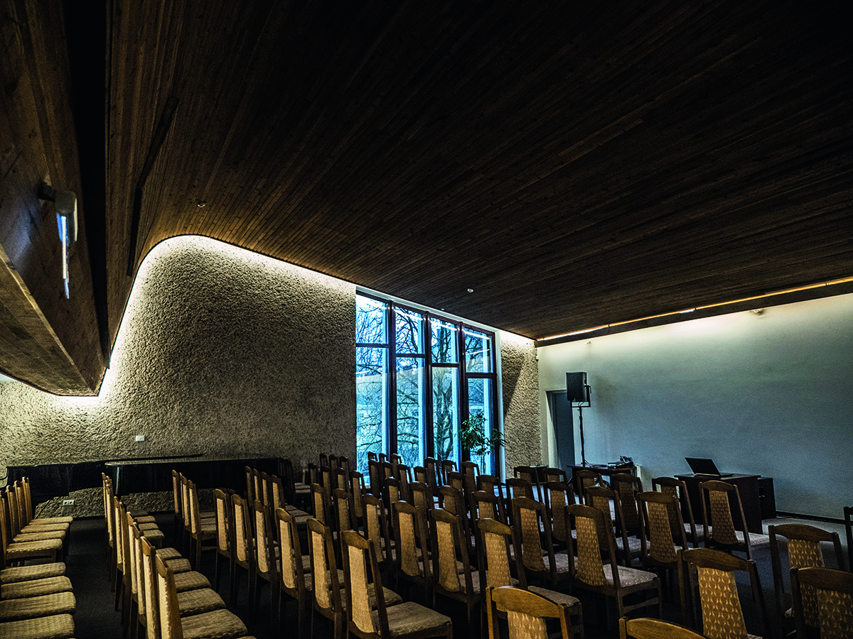 „Buvo daug abejonių, kaip sutvarkyti apsvilusias salės lubų lenteles: ar jas bandyti kaip nors nuvalyti, ar pakeisti. Mums pasisekė, kad keisti neprireikė ir visus suodžius pavyko nutrinti sausu ledu. Dabar jos atrodo visiškai tokios, kokios buvo“, – mostelėjęs į „banguojančias“ salės lubas pasakoja Kompozitorių sąjungos pirmininkas Mykolas Natalevičius.