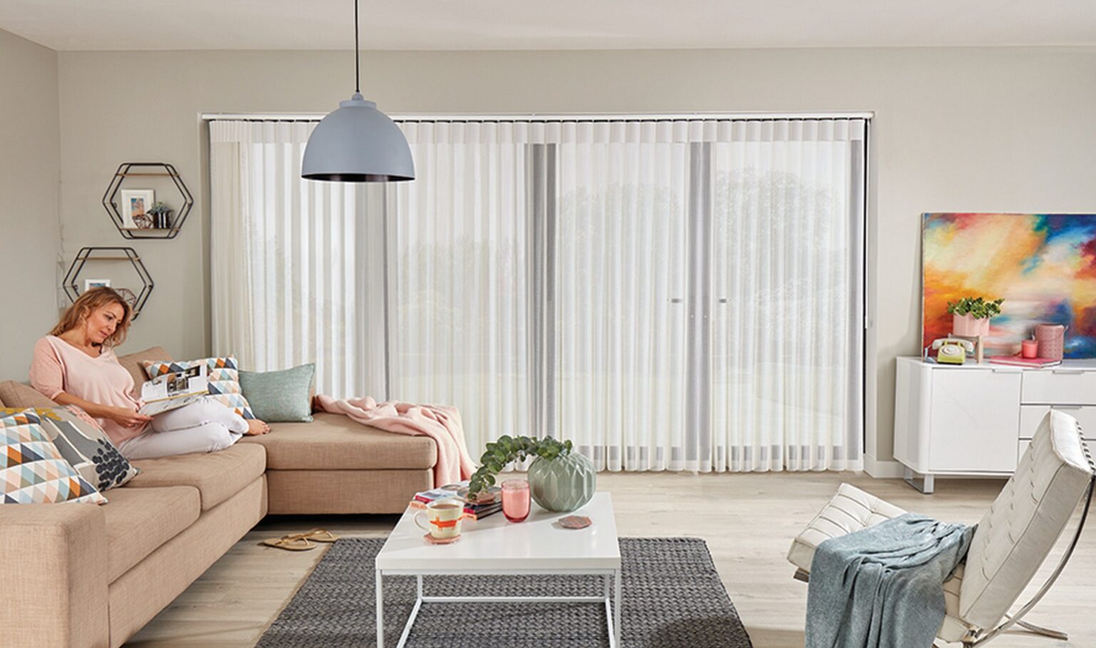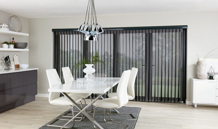 Šios po lengvomis dieninėmis užuolaidomis gulančios vertikalios žaliuzės pakelia modernių namų dekorą ir stilingų biurų langų dengimą į naują lygmenį. Tai paprastas būdas erdvei suteikti naują stilių.