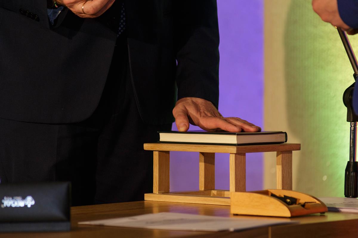 Jis numatytas dviejų dalių. Pirmoje, tradiciškai vedamoje Panevėžio apygardos rinkimų komisijos pirmininkės, 27-i politikai, padėję ranką ant Konstitucijos, duos priesaiką, ir jiems bus įteikti Tarybos nario pažymėjimai.