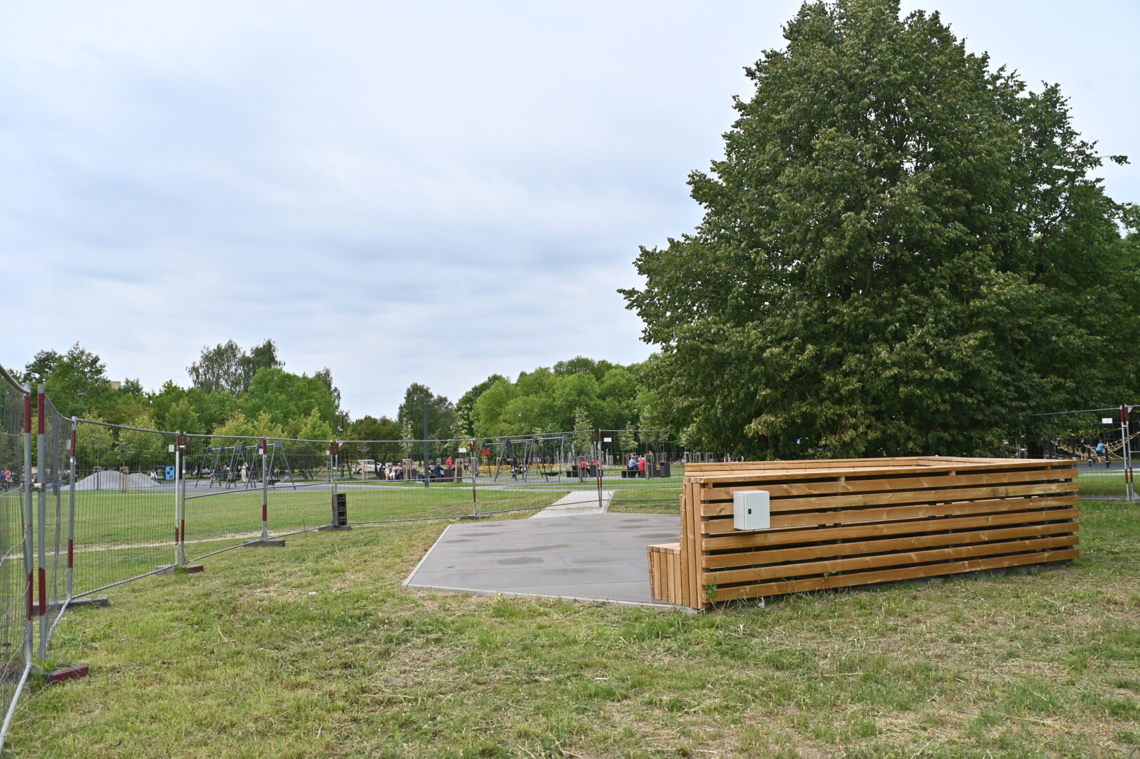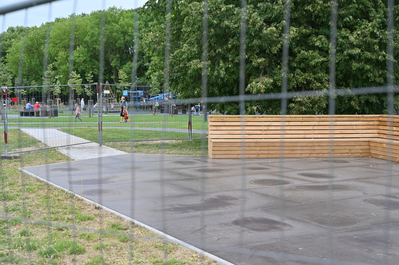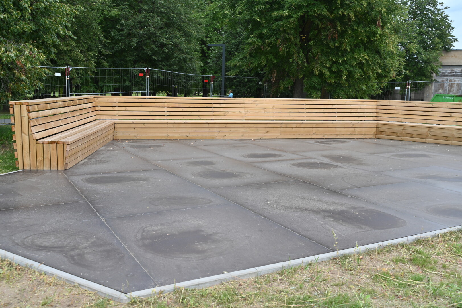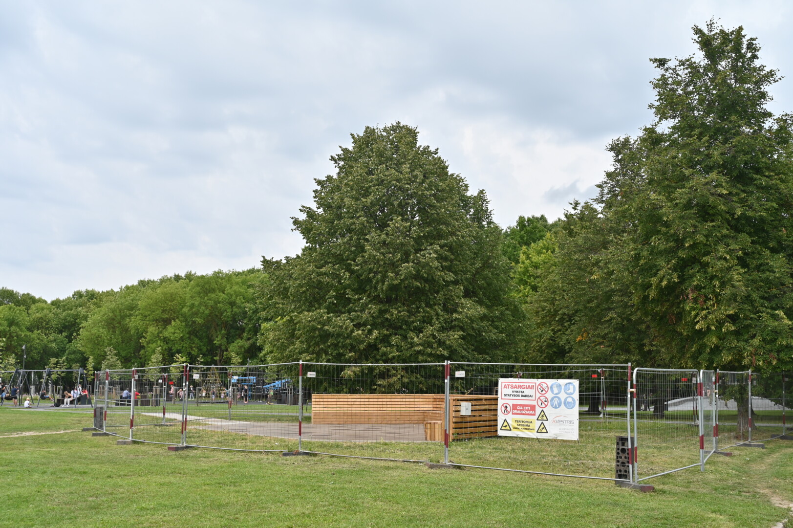 Nuo norinčiųjų pamankštinti kojas ją saugo statybinė tvora. Pasirodo, šokių terasos įrengimas virto savotišku detektyvu.