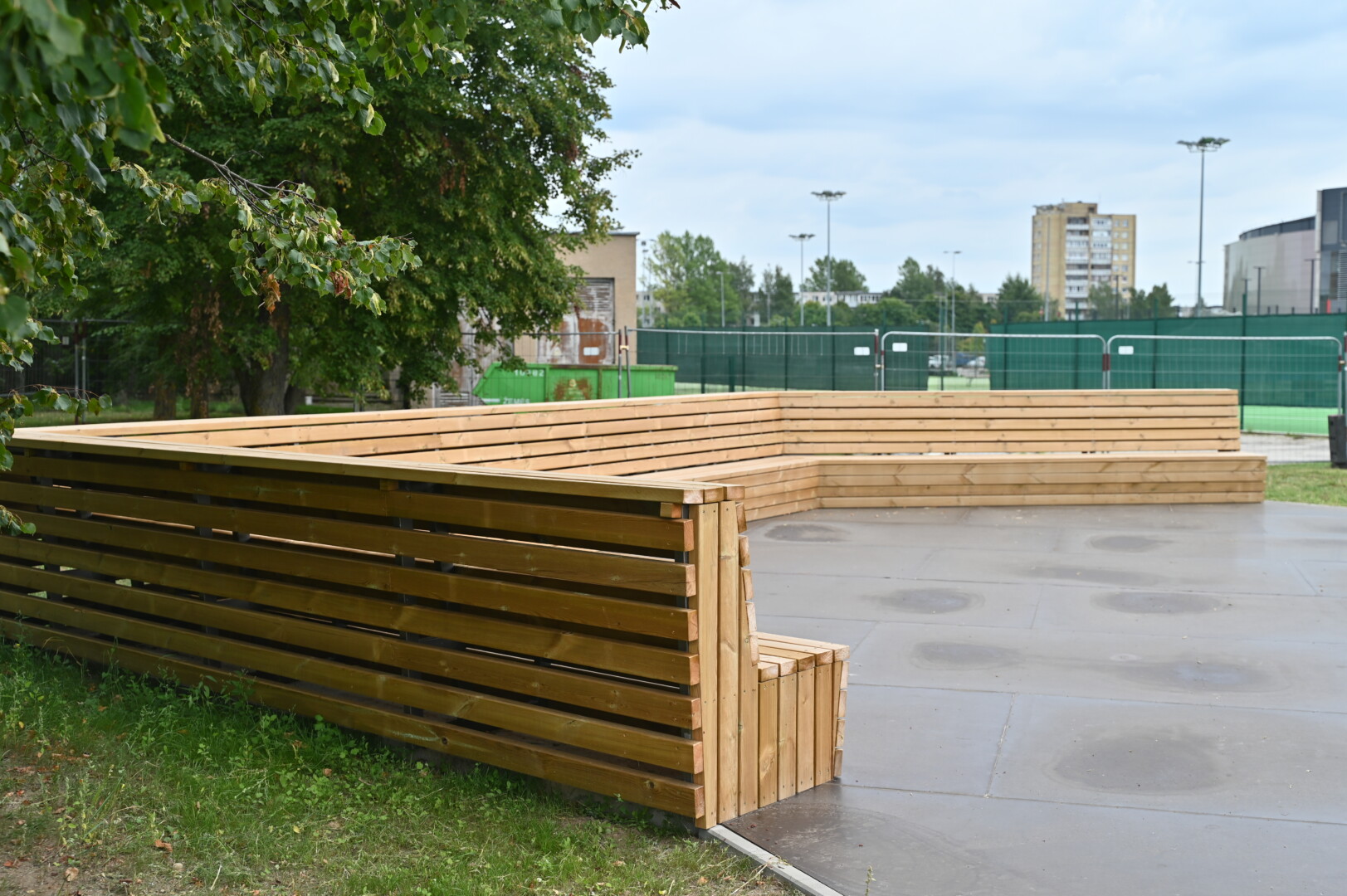 Antruoju statybų etapu numatyta įrengti kolonas, virš kurių bus pritvirtintas tentas, tapsiantis stogu šokėjams nuo kaitros ir lietaus. Žiemomis tentas bus nuimamas.