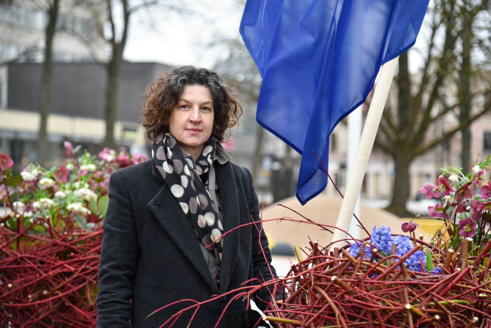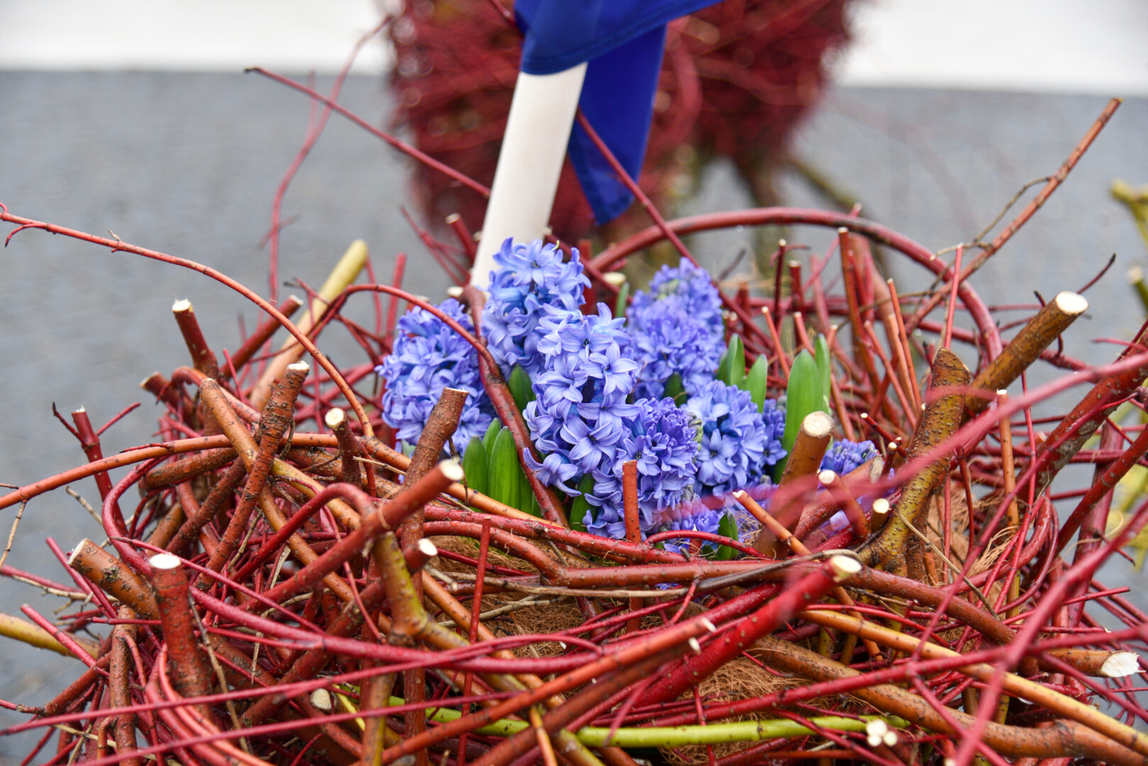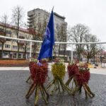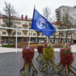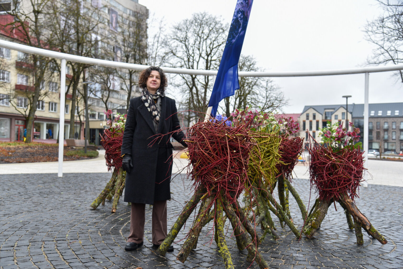 Jau antradienio rytą kompozicijos kūrėja vazoną papildė gėlėmis. Jame jau iškelta ir Žemės vėliava.