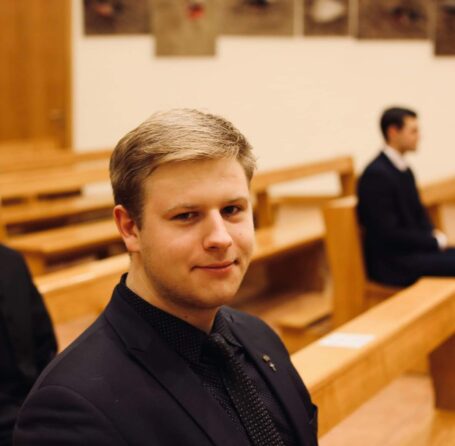 „Per stojamuosius jaučiausi gerai, gana tvirtai, tad tikėjau, kad būsiu priimtas. Taip ir atsitiko. Stojom devyni, priėmė septynis, dabar, po trijų kursų, studijuoti likome penkiese“, – skaičiuoja klierikas.