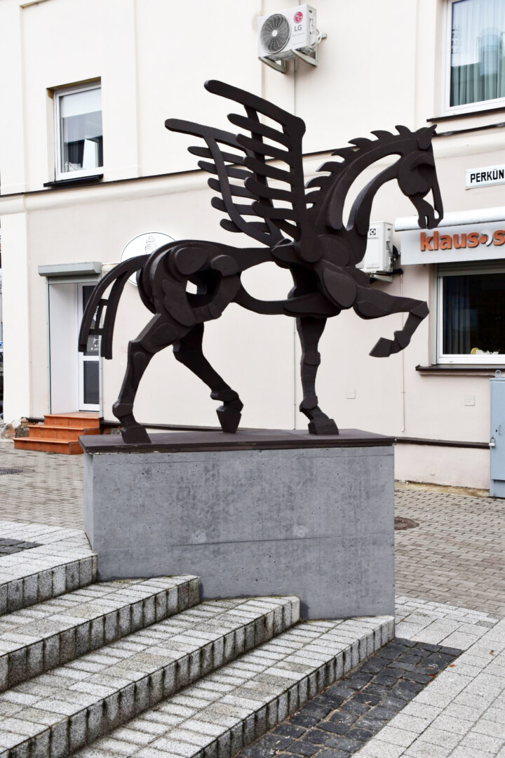 Toks Pegasas iš putplasčio nutupdytas ant tuščio postamento greta įėjimo į Dailės galeriją.