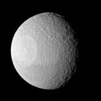 Akies vyzdžio efektą kuria įspūdingas krateris, jį 2007 metais nufotografavo zondas „Cassini“.