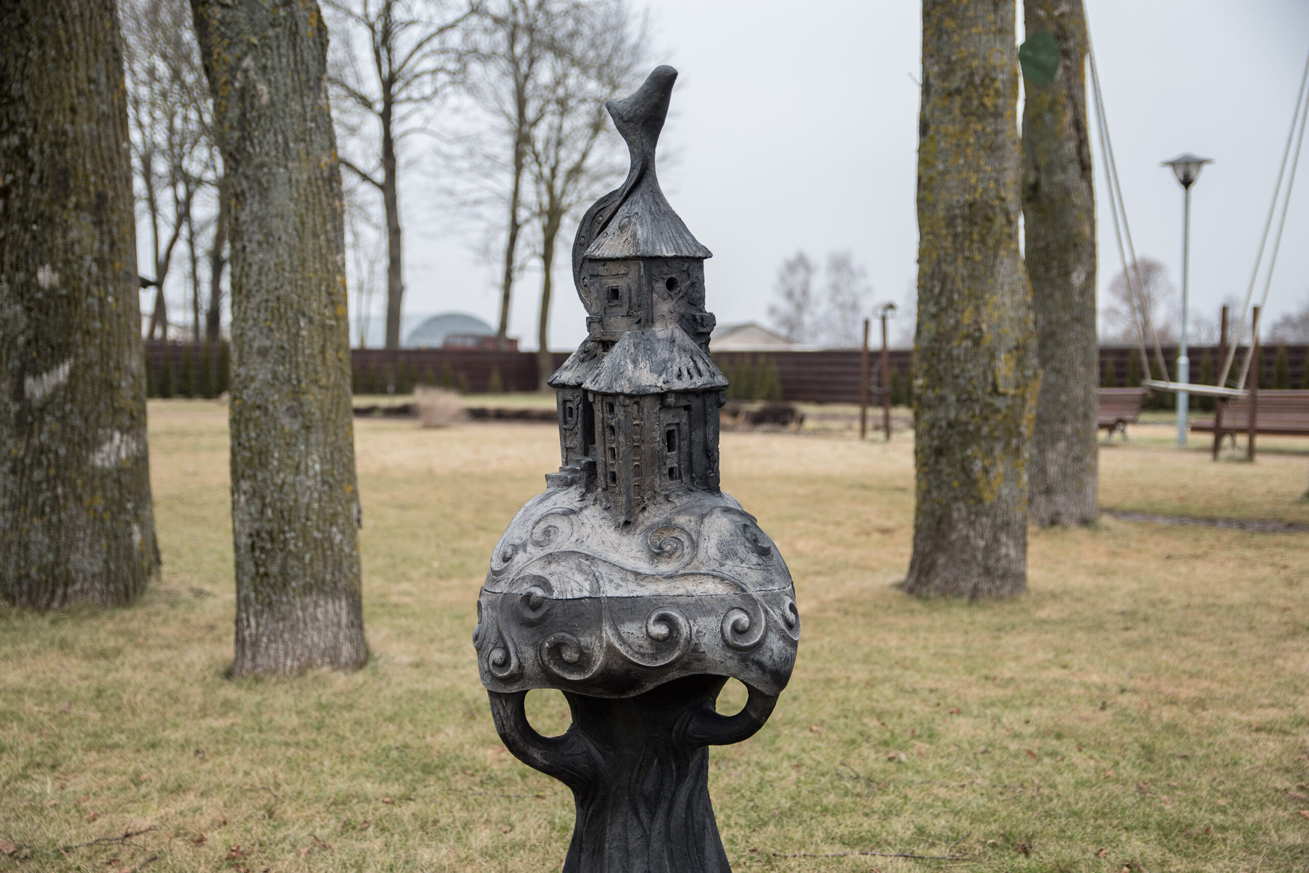Vienas gražus juodosios keramikos kūrinys, sukurtas meistro Audriaus Goko, puošia ir Tradicinių amatų centro kiemą.