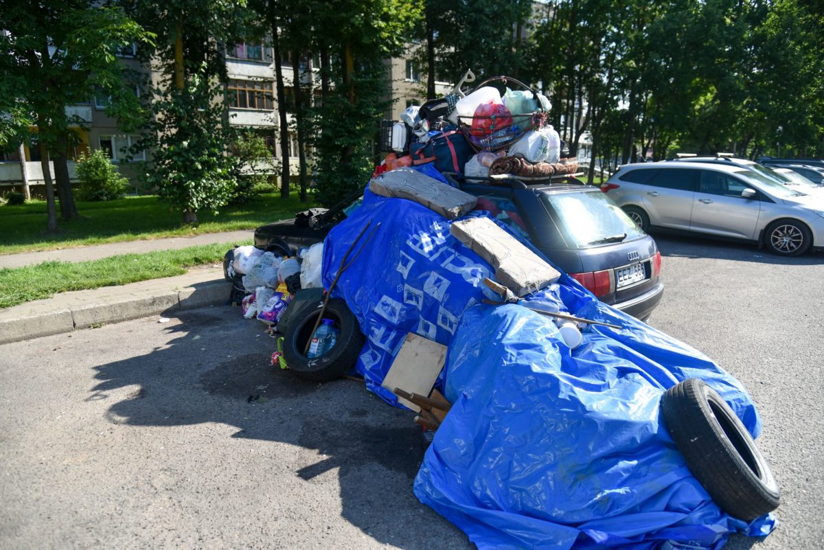 Jau ne vienas mėnuo, kai Ateities gatvės gyventojai priversti lipti per drabužių stirtas, juos rankioti išmėtytus. Tokia