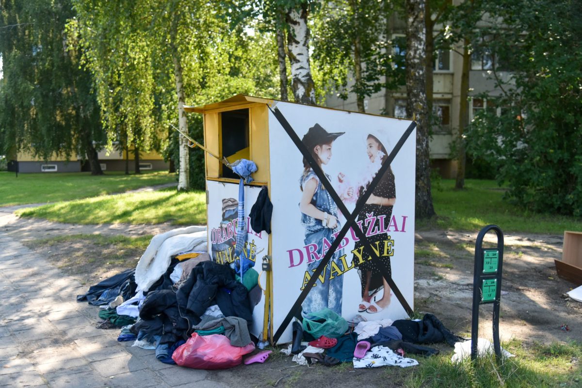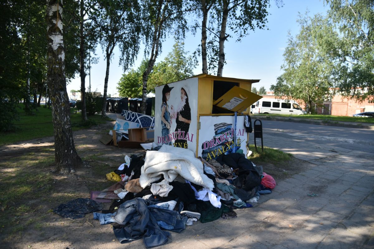 Įvairiose Panevėžio vietose pastatyti labdarai skirtos tekstilės konteineriai atrodo kaip pasityčiojimas iš geros idėjos.